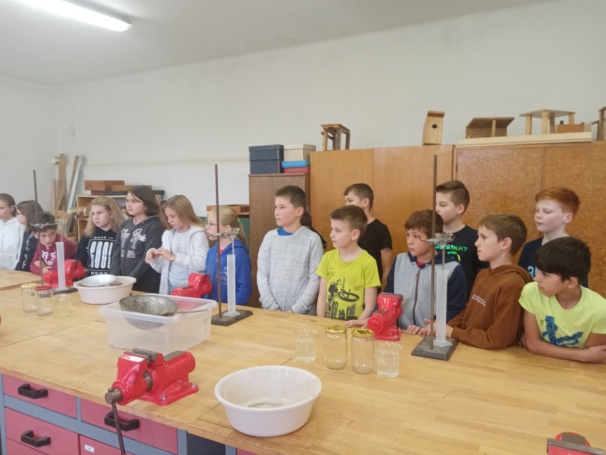 V pondělí a v úterý se naši žáci čtvrtých a pátých tříd účastnili projektového dne, který si pro ně připravili učitelé druhého stupně. Projektový den byl zaměřen na neživou přírodu, žáci se seznámili s nerosty a horninami, s významem půdy pro člověka a s energetickými surovinami jako je ropa, uhlí a zemní plyn. Žáci měli možnost si přírodniny osahat, dověděli se spoustu zajímavých a užitečných informací a nakonec viděli a také si vyzkoušeli různé pokusy.