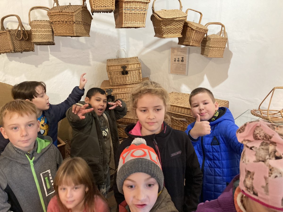 Po prohlídce kanceláří úřadu jsme si prohlédli i blízký pranýř a usoudili, že bychom nechtěli zažít jeho plné využití. V Košíkářském muzeu na nás už čekala p. Věra Pátíková, která nám umožnila prohlídku muzea s krásnými výrobky našich předků, kteří se zabývali po staletí pletením košíků, tašek, kočárů, podnosů, nábytku…Zkusili jsme si také vyrobit šlem z proutí! Naše putování po městě zakončila návštěva místního hřbitova s hrobem Marie Tylové, kde jsme zapálili svíčky a taky se snažili zachránit malého ježečka.
