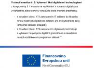 Naše škola dostala dotaci z Národního plánu obnovy na pořízení mobilních digitálních technologií pro znevýhodněné žáky. Tato dotace byla v roce 2022 ve výši 259 000,- Kč a v roce 2024 ve výši 54 000,- Kč.