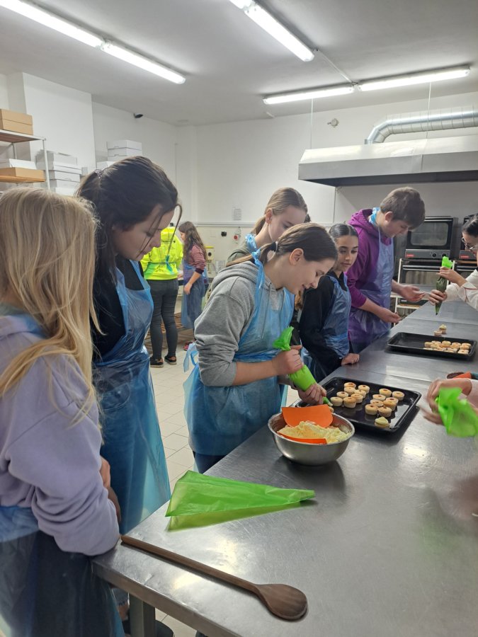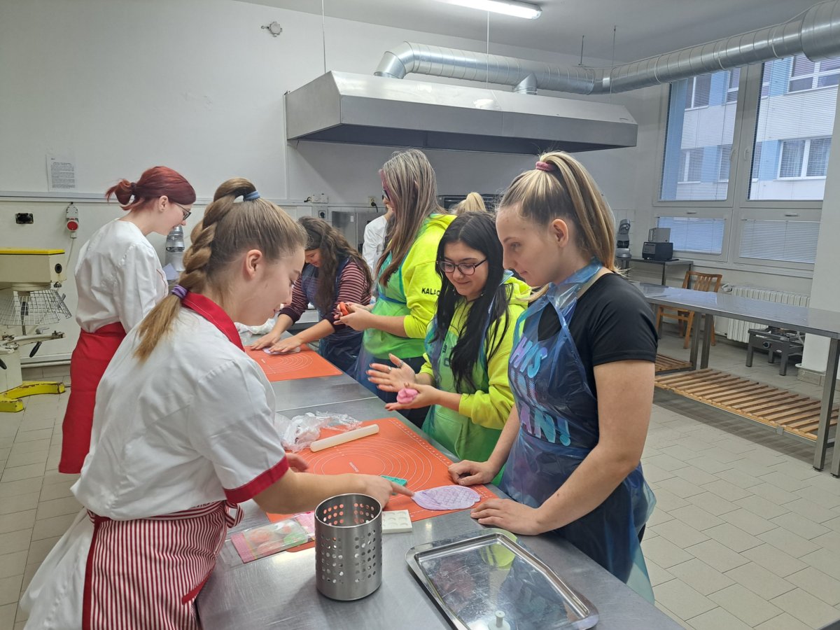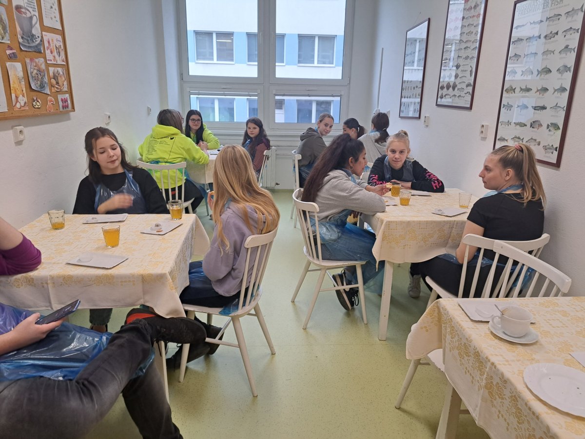 Ve středu 9. listopadu 2022 jsme přijali pozvání na workshopy Střední hotelové školy v Kroměříži. Žáci a žákyně 8. a 9. tříd naší školy se seznámili s učebními obory cukrář, pekař, chovatel a jezdec koní, prodavač. Ochotní studenti a paní učitelky s nimi dozdobili muffiny, připravili si zdravé malé občerstvení a jednohubky, v pekárně si udělali rohlíky a upletli pletýnku. Velmi se nám líbilo v dílně prodavačů – floristů, kde si měli možnost vytvořit malou ozdobu na ruku nebo k Vánocům. Zavzpomínali si na dětství, kdy si hráli na prodavače. V dílně prodavačů se vžili do role prodavačky, u pokladny jim to slušelo a byli šikovní u všech praktických činností, které si během dne vyzkoušeli. Specifika oboru Chovatel a jezdec koní nám vysvětlili studenti tohoto oboru se svou paní učitelkou a ocenili jsme jejich úspěchy na soutěžích. Náročnost učiva na střední škole poznali v učebně jazyků, kde vyplnili anglickou křížovku o oblečení. Paní učitelka Abrahámková je seznámila s maturitními obory na škole a aktivitami školy pro studenty. Děkujeme moc studentům a učitelům, kteří se nám věnovali a připravili pro naše žáky pěknou prezentaci jejich střední školy.