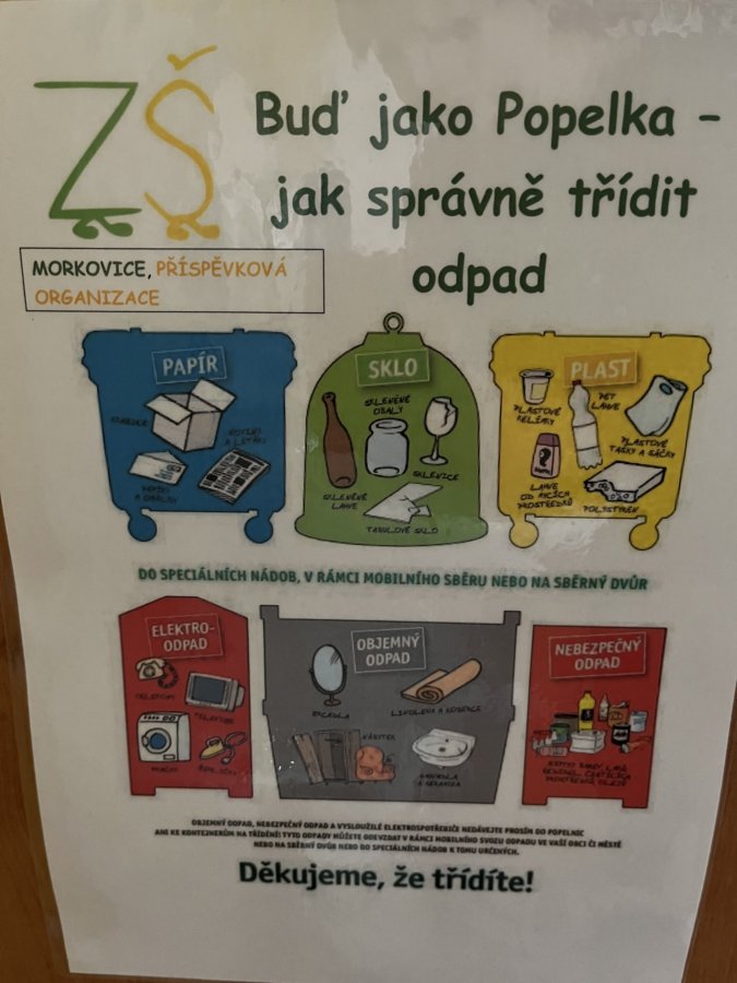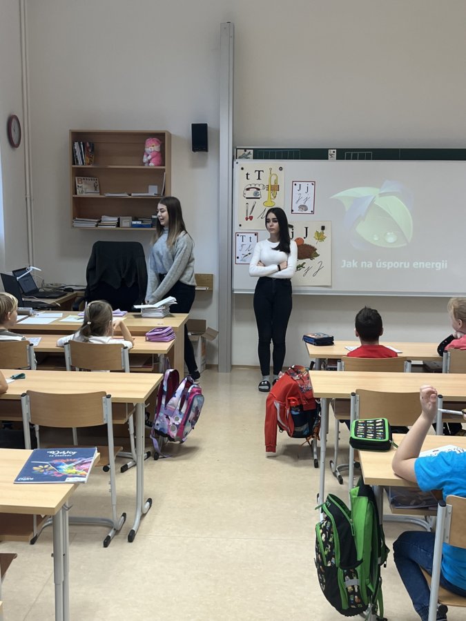 Ve čtvrtek 8. prosince měli žáci 1. stupně ve svých vyučovacích hodinách další zpestření výuky. Žáky a žákyně 1.-5. třídy navštívily žákyně z 8. A – Denisa a Nikola. Měly pro žáky připravenou krátkou prezentaci o úspoře energií a o třídění odpadů. Žáci naší školy se dozvěděli, že je důležité šetřit elektřinou – zhasínání světel na přestávku a při odchodu ze třídy. Také je velmi důležité správně větrat – větrat krátce a intenzivně. A nakonec, aby žáci byli jako Popelka a správně třídili odpad. Všechny zúčastněné třídy obdržely informační tabulku se správných postupem třídění odpadu.