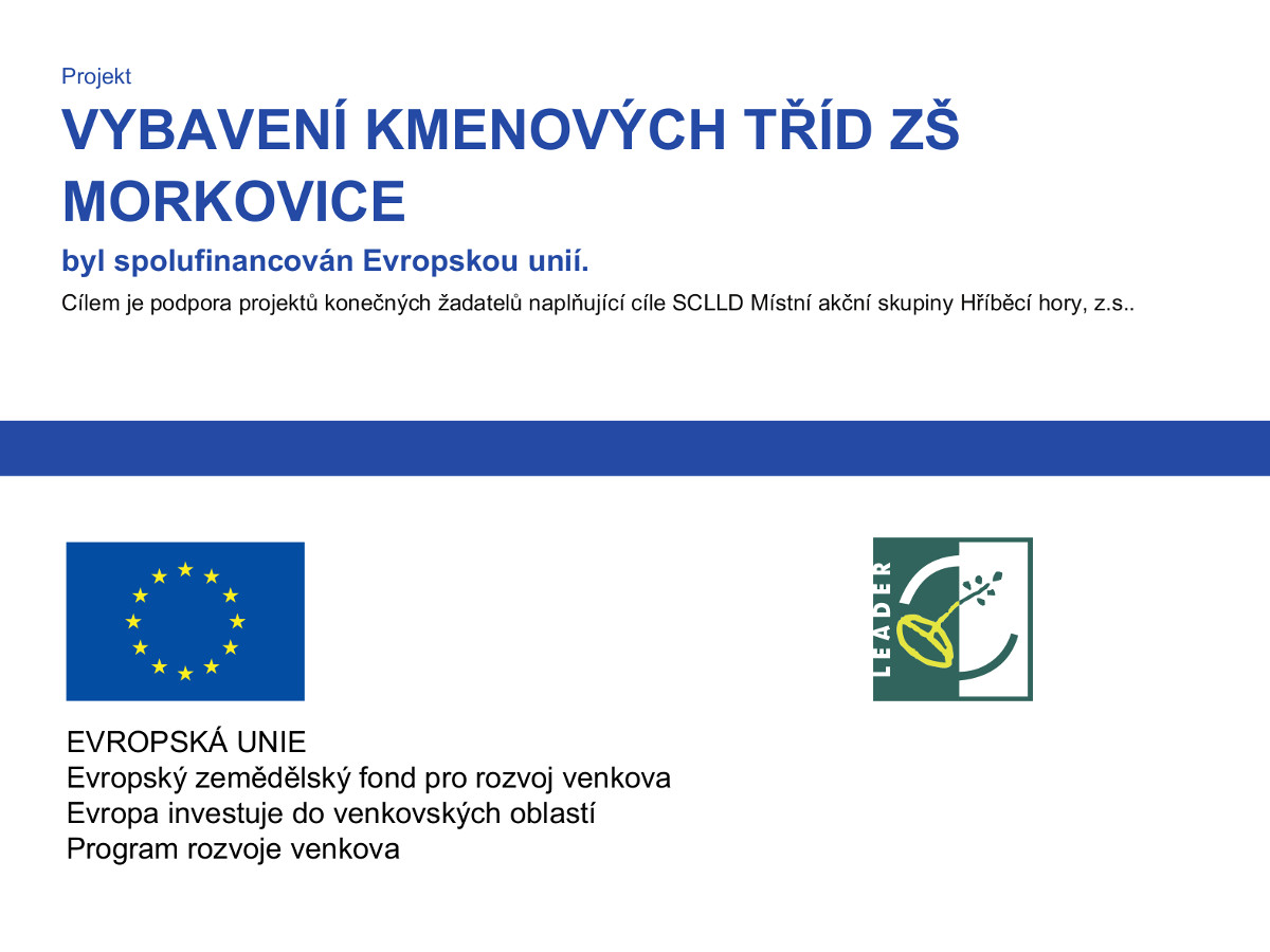 Základní škole se podařilo získat dotaci o výši 400 268,- Kč (s 20% finanční spoluúčastí školy). Jedná se o dotaci z výzvy MAS Hříběcí Hory - Program rozvoje venkova. Z těchto finančních prostředků jsme vybavili nově 4 kmenové třídy lavicemi, židlemi a dvě z těchto tříd i tabulemi. Nahradili jsme tak vybavení, které bylo dlouhodobě nevyhovující a které jsme museli neustále opravovat a rekonstruovat.