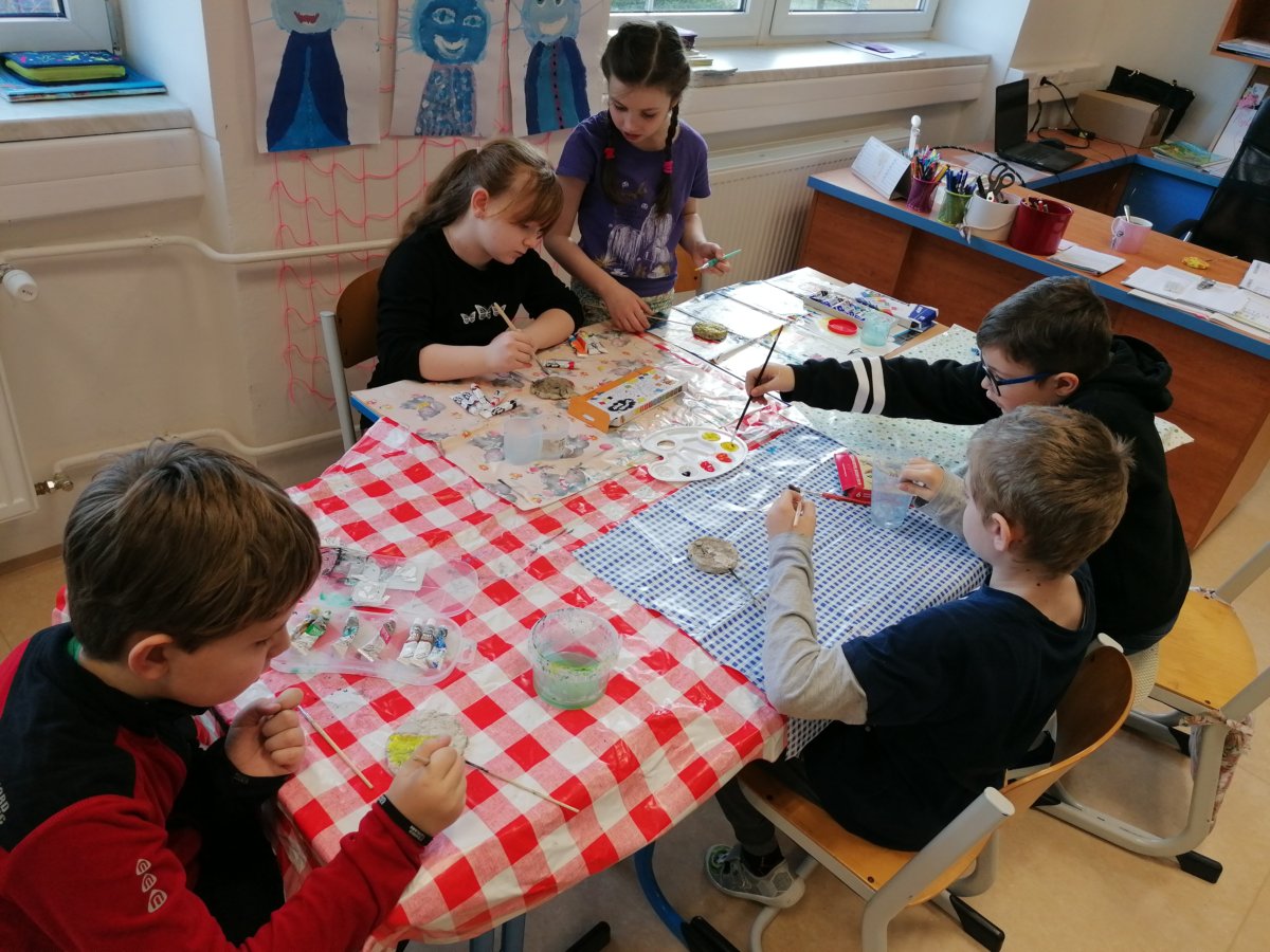 Žáci 2.B se zúčastnili jarní výzvy "Upcycling". Z plat na vajíčka vytvořili krásné jarní dekorace do květináčů. Plata si sami natrhali na malé kousky, následně rozmočili, zpracovali a vymodelovali do požadovaného tvaru. Nakonec pomalovali barvami. Vznikla tak spousta usměvavých sluníček.