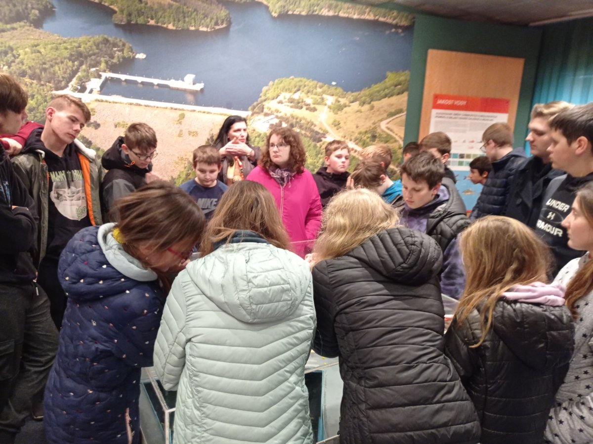 Poznatky nabyté v infocentru jaderné elektrárny mohli žáci porovnat s informacemi, které získali při prohlídce přečerpávací vodní elektrárny. Zde si žáci prohlédli vyřazenou turbínu, opět jim průvodkyně popsala, na jakém principu funguje přečerpávací vodní elektrárna a že její výhodou je schopnost okamžité reakce na nedostatek elektrické energie a samozřejmě také využívání obnovitelné energie z vody. Na závěr měli žáci možnost prohlédnout si dokonce i strojovnu vodní elektrárny.