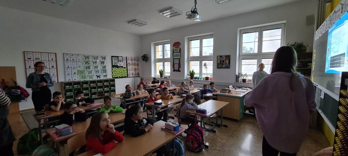 Tentokrát děti z prvních tříd projektem provázely žákyně devátého ročníku. Uskutečnily tak další z akcí Deváťáci patrony prváků.