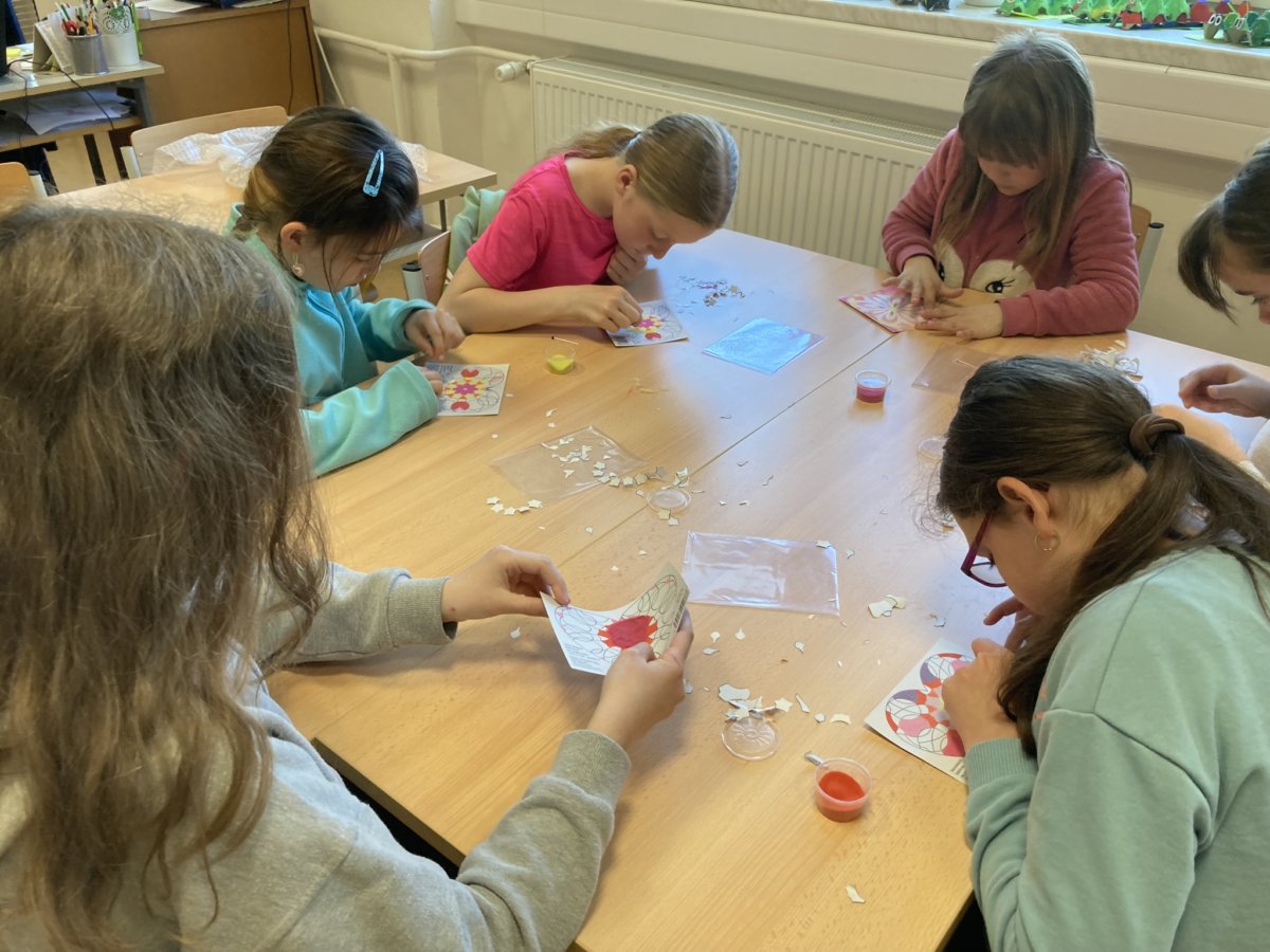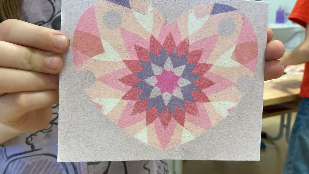 Velké poděkování patří mamince - paní Frkalové z Pačlavic, která nám, tedy 4.B i třídě 2. A, srdíčka na pískování darovala. Moc a moc děkujeme.