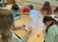 Minulý týden jsme ve třídě tvořili srdíčková přáníčka pro maminky. Srdíčka jsme zdobili tak, že jsme odlepovali části samolepící pásky, a pak jsme na lepící plochy sypali barevný písek. Říká se tomu pískování. Nakonec jsme si vybrali na internetu krátkou básničku a tu jsme opsali bez chyb (ne všichni:))) na srdíčko zezadu. Každé srdíčko bylo jiné a krásné! Práce nás moc bavila.