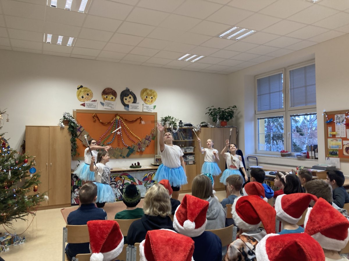 Děvčata jsou důkazem toho, že vedeme žáky naší školy k samostatnosti, aktivitě a tvořivosti. Vystoupení si připravila naprosto sama včetně výběru hudby, nácviku pohybů a triků s hůlkou. Velmi pěkná byla i choreografie, na které se společně podílely všechny dívky. Na vánoční besídku postupně pozvaly všechny třídy 1. stupně a zájemci měli možnost si manipulaci s hůlkami sami vyzkoušet. Že hůlka sem tam trémou spadla, nikomu nevadilo a diváci děvčata oceňovali potleskem.