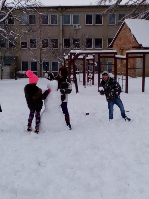 V zimním období trávíme čas převážně v klubu, ale když napadl sníh, vyrazili jsme stavět sněhuláky. Dětem to šlo náramně. Dále proběhl turnaj v pexesu. Bylo to příjemné odpoledne.