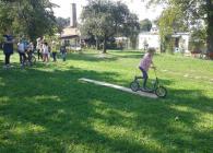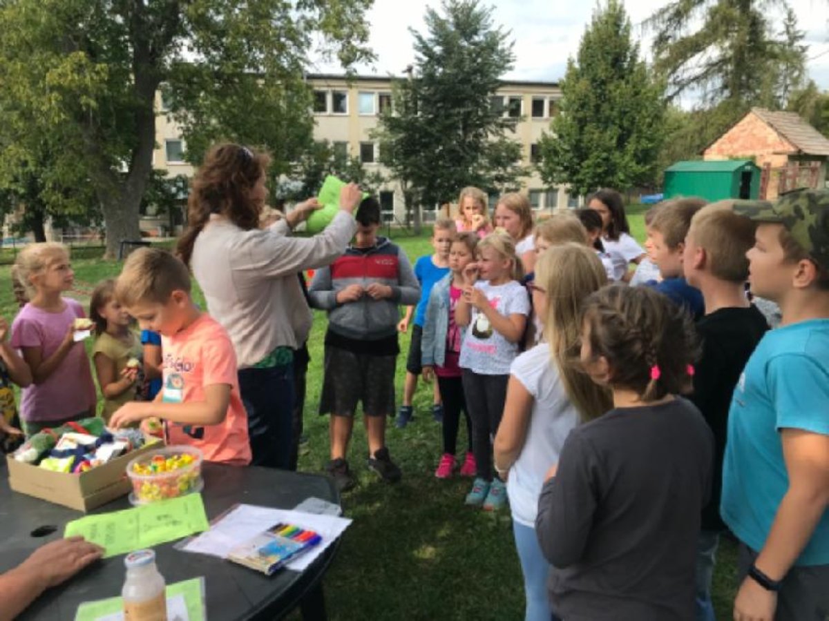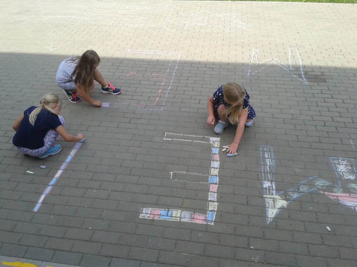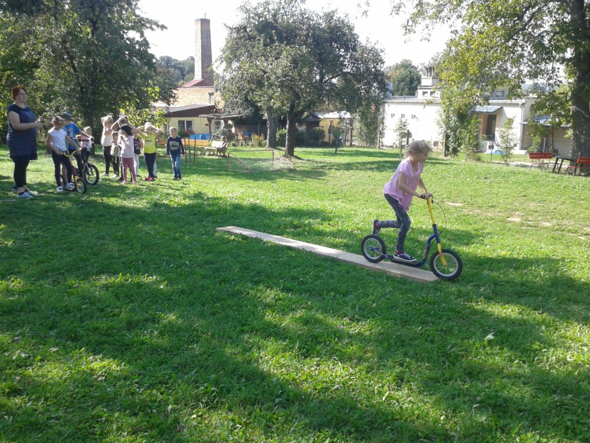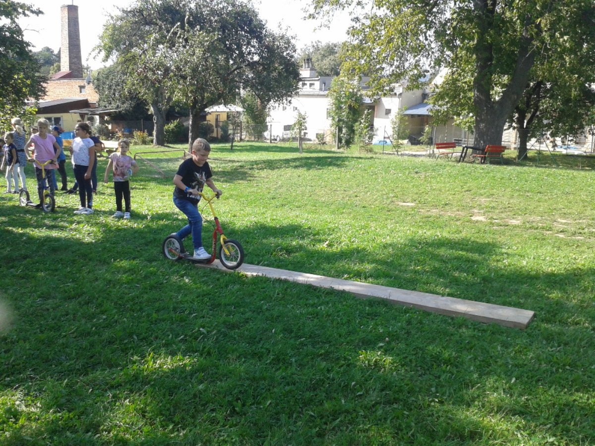 Začátek školního roku děti ve školních družinách trávily hlavně na čerstvém vzduchu. Před školou jsme malovali křídami písmena a na zahrádce jsme uspořádali celodružinovou soutěž: JÍZDA ZRUČNOSTI NA KOLOBĚŽCE.