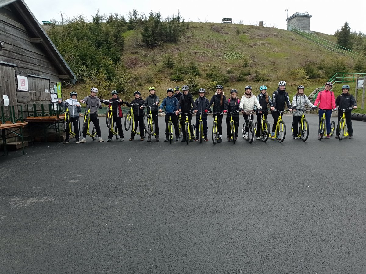 1 den: Naše exkurze začala cestou do Koutů nad Desnou v Jeseníkách. Když jsem přijeli, tak jsme se ubytovali v penzionu Kouty. Poté jsme šli na výborný oběd do restaurace. Po obědě jsme se nachystali a jeli na prohlídku přečerpávací vodní elektrárny Dlouhé Stráně. Zaměstnanci této elektrárny nás seznámili s elektrárnou a ukázali nám ji i zevnitř pomocí virtuálních brýlí. Ve filmu bylo uvedeno jak elektrárna funguje a vypadá. Film byl velice zajímavý, žáci se dozvěděli nové informace. Poté nás průvodce provedl tunelem, kde jsme viděli vnitřní část motoru elektrárny. Další naše zastávka vedla na horní nádrž elektrárny, kterou jsme si obešli okolo. Dále na nás čekal autobus s koloběžkami, kterými jsme jeli 17 km a dojeli až přímo k našemu penzionu. Cesta ale nebyla tak jednoduchá, potkal nás pěkný liják :) Ale přeci nejsme z cukru, sice jsme byli celí promáčení, ale byla to náramná sranda. Jak jsme uschli, tak nás čekala zasloužená večeře ve Velkých Losinách, kde jsme si dali pizzu a prošli si místní lázně a areál města.