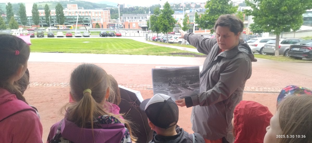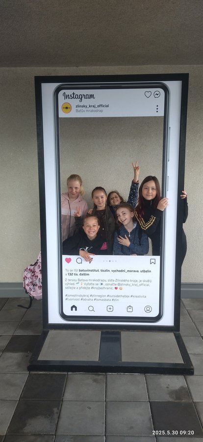 V pátek 30. 5. vyjeli žáci 4. tříd na třídní výlet do Zlína. Naším cílem byla budova 21, tzv. Baťův mrakodrap. O Tomáši Baťovi jsme se už hodně učili, proto jsme byli zvědaví, jak celý areál továrny i mrakodrap vypadá. Vyjeli jsme na střechu mrakodrapu, odkud byl úžasný výhled na celý Zlín.