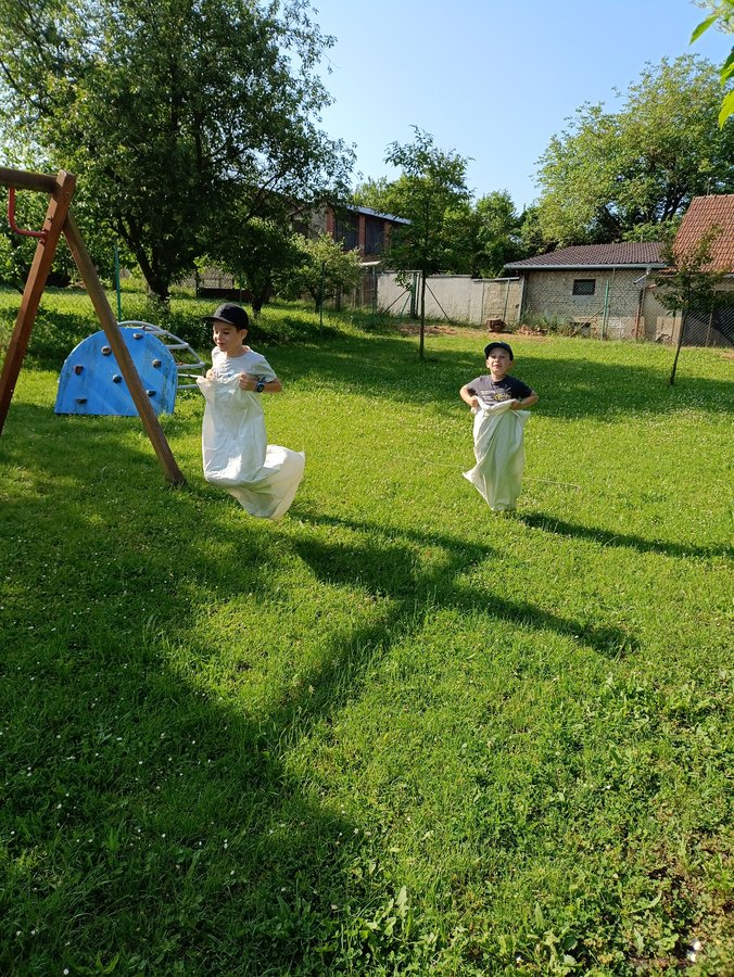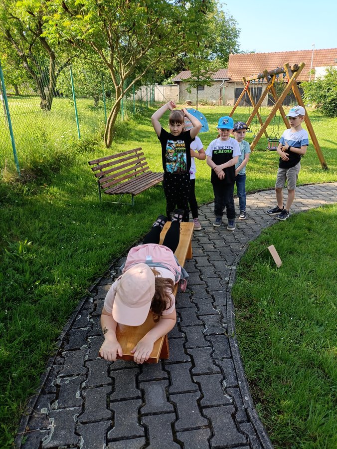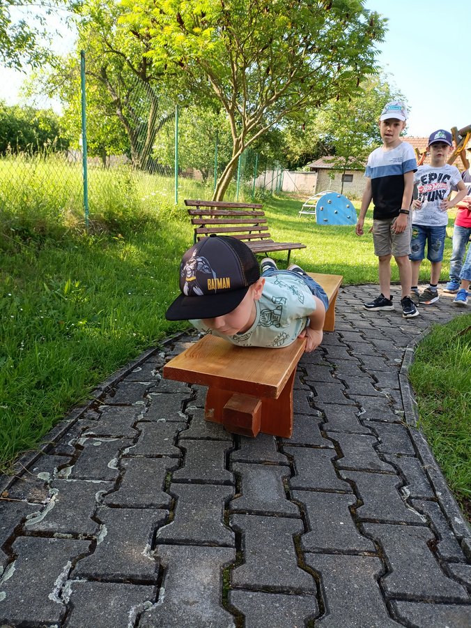 Ve středu 4. 6. 2025 se všichni prváci vydali autobusem do MŠ Pornice, kde nás moc pěkně přivítali. Hned na úvod našeho výletu jsme si vyzkoušeli různé sportovní dovednosti na školkové zahrádce – skákání v pytli, hod míčkem, přeskakování překážek…