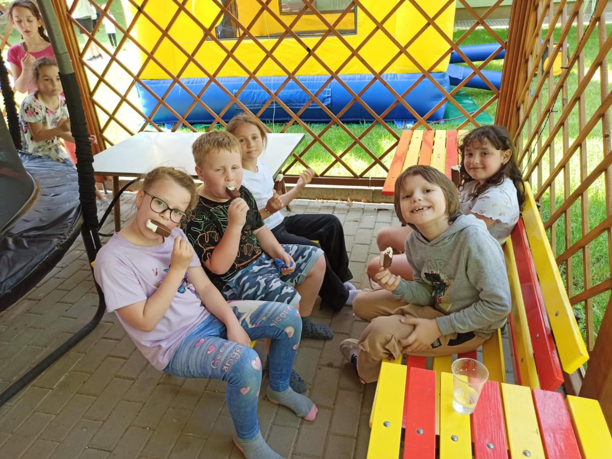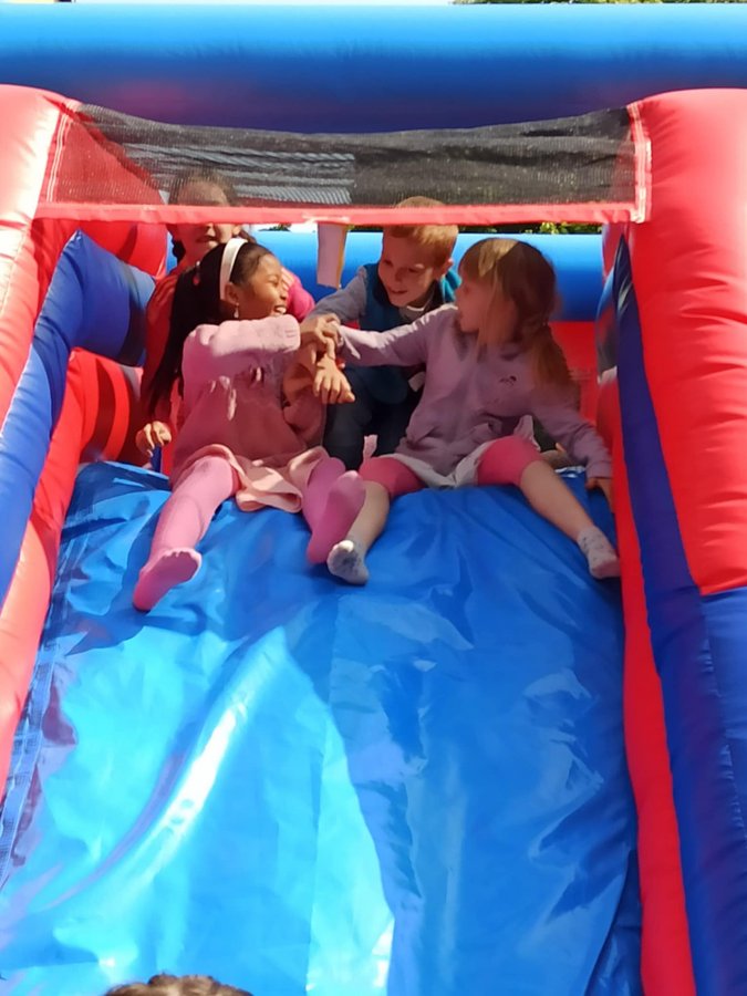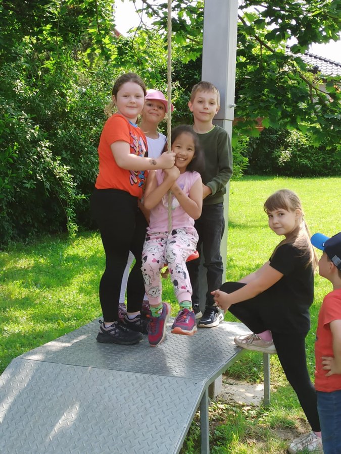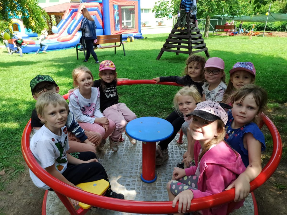 V úterý 10. 6. 2025 jsme si zavzpomínali na chvíle prožité v MŠ Morkovice. Navštívili jsme totiž školkovou zahrádku, kde nás přivítali předškoláci z MŠ, paní učitelky a taky úžasný skákací hrad, spousta fajn míst ke hraní, pískoviště…