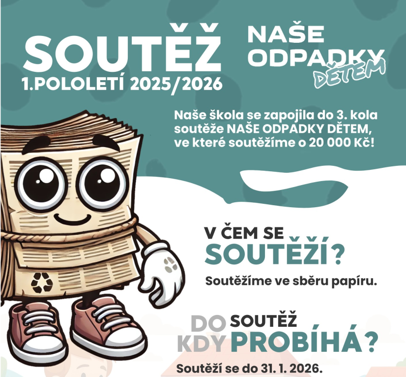 pololetní školní akci v rámci projektu Naše Odpadky dětem letos společně zaštiťuje školní ekotým a žákovský parlament. Díky jejich aktivnímu zapojení mají žáci možnost se přímo podílet na organizaci akce a učit se odpovědnému přístupu k životnímu prostředí. Cílem projektu je vést děti k vědomému třídění odpadu, pochopení jeho dopadu na okolí a rozvoji spolupráce i občanské angažovanosti.