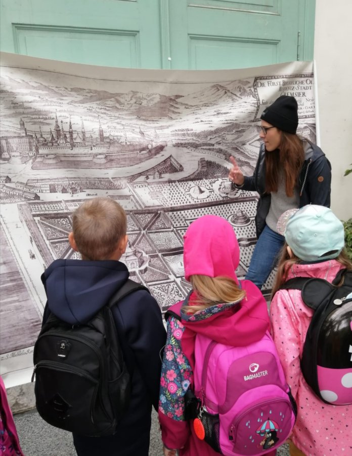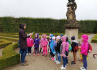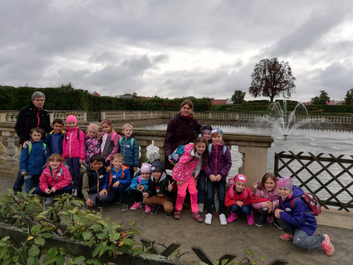 Děti z 1.A začaly exkurzi vyprávěním o založení Květné zahrady. V plánu zahrady si vyhledaly geometrické tvary a pak si za pomoci tiskátek vytvořily svůj vlastní plán. Dále si prohlédly část zahrady s citroníky, zahrály si na sochy a na závěr si šly splnit přání k jednomu z rybníčků, kde plavala velká zlatá rybka.