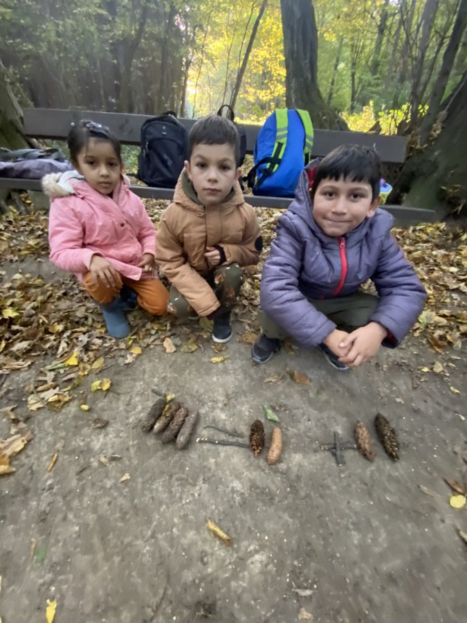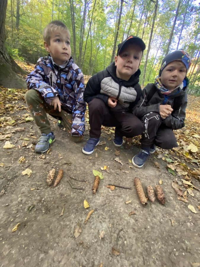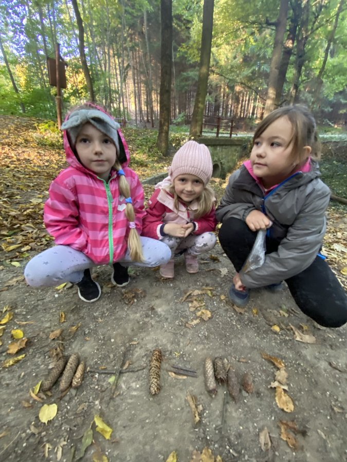 Ve středu 20. 10. 2021 – na Den stromů – prožili žáci 1. A netradiční školní den. Čekalo je totiž učení venku v přírodě. Hned ráno se celá třída vydala lesem ke Strašné. Cestou jsme si zopakovali prvouku – poznávali stromy, plody, prohlédli si pole a nasbírali různé přírodniny. Na Strašné jsme si za pomoci šišek procvičili matematiku (sčítali jsme je, odčítali, rozkládali a porovnávali). Potom přišly na řadu nasbírané klacíky a opakování čtení – skládali jsme z nich písmena, slabiky a první slova. Práce všechny bavila a děti zjistily, že se lze učit i venku a použít k tomu různý nasbíraný materiál.