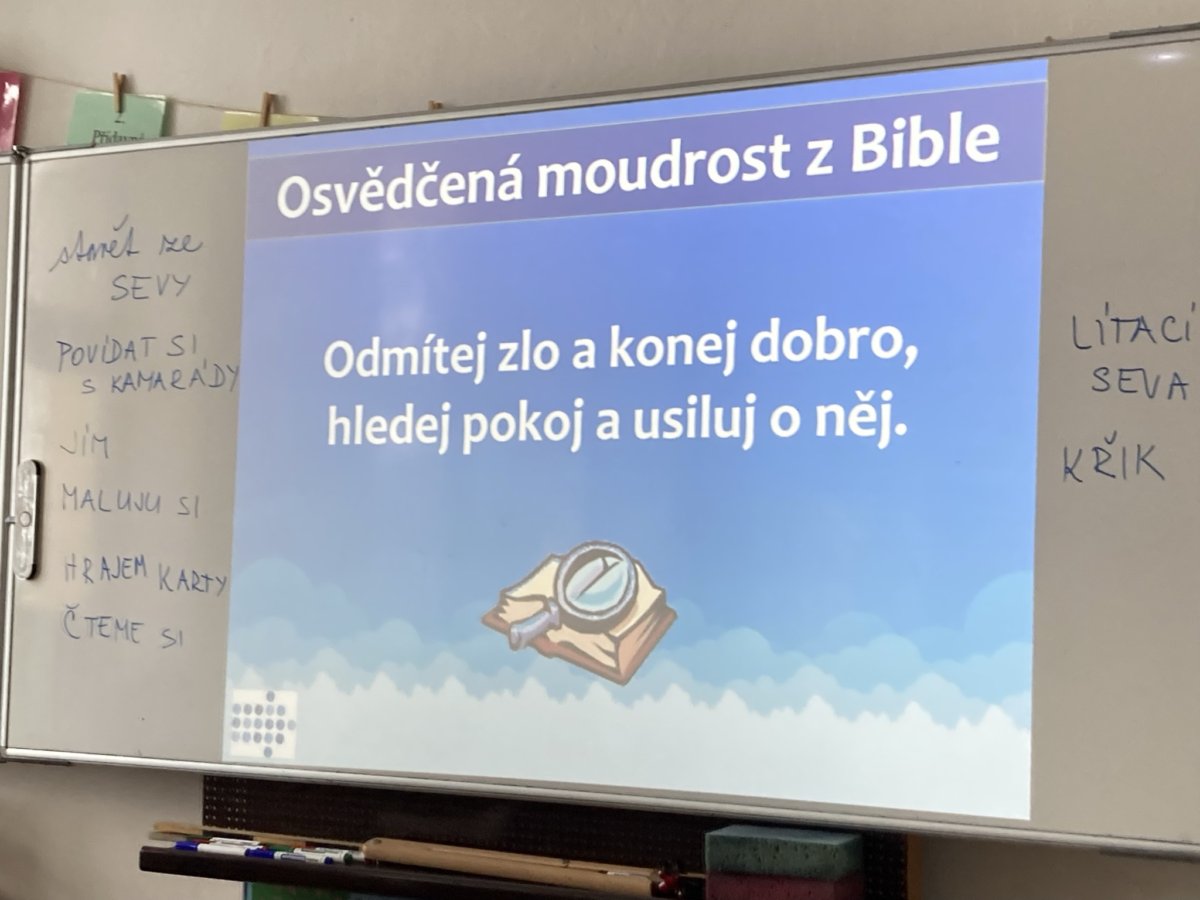 Poslouchali jsme její povídání, hráli zajímavé hry a zhlédli vtipná i vážnější videa. Ale hlavně jsme hodně přemýšleli sami o sobě a také o svých spolužácích.