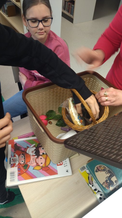 Před několika dny jsme navštívili knihovnu v Morkovicích. S paní knihovnicí jsme si povídali o knihovně a o jejím chodu. Naučili jsme se, jak vyhledat knihy podle žánrů a autorů. Pak si pro nás paní knihovnice připravila soutež. V malém košíku byly pro nás nachystané různé předměty a my jsme se zavázanýma očima, podle hmatu museli uhodnout název dětské knihy. Byla to legrace pro všechny.