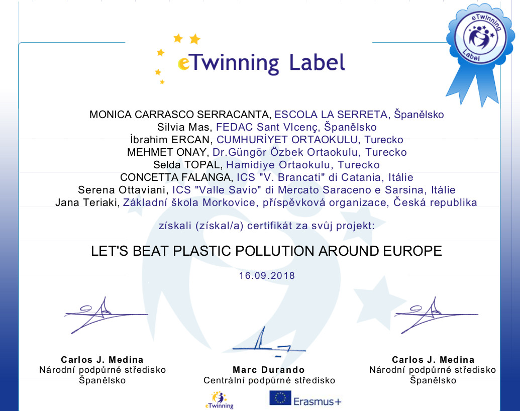 Od roku 2016 jsme realizovali již 4 mezinárodní projekty. V tomto roce v rámci ekotýmu spolupracujeme se školami z Turecka, Itálie a Španělska na environmentálním projektu snížení plastů. V rámci tohoto projektu jsme již podnikli dotazníkové šetření na současný stav, kampaň proti používání plastových tašek při nákupech. Vyhlásili jsme také soutěž o originální self-made nákupní tašku.