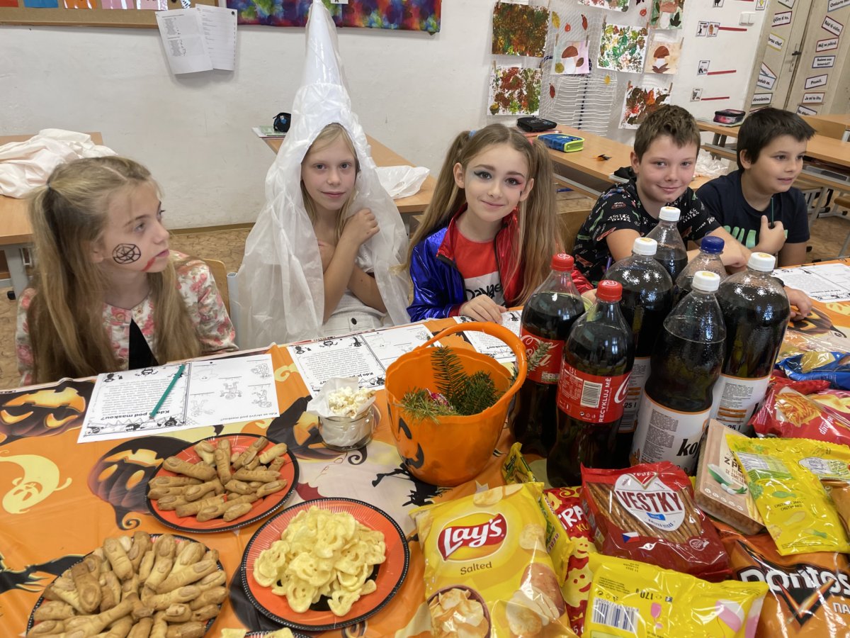 Dne 1.11.2023 se na naší škole uskutečnila akce „HALLOWEEN“. Ve třídě 4.A už od rána probíhaly vrcholné přípravy, které spočívaly v převléknutí se do strašidelných kostýmů, nachystání výzdoby a bohatého občerstvení, které rozhodně nesmělo chybět.