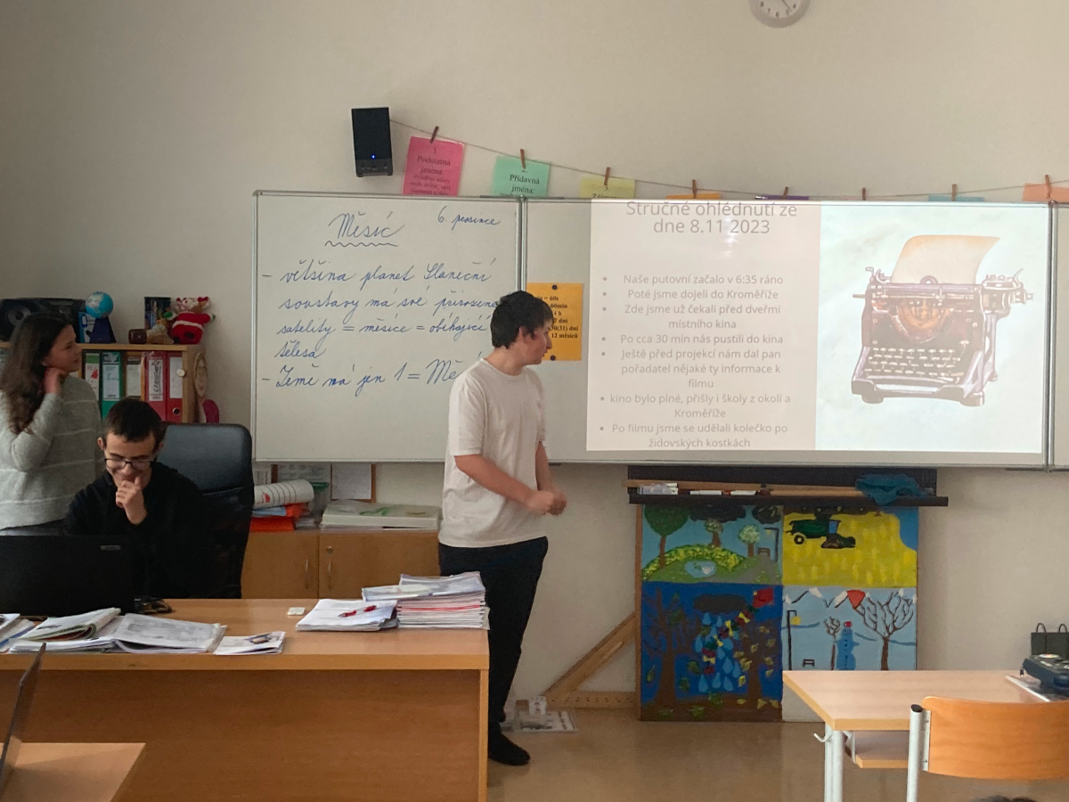 To už víme teď i my - páťáci. Navštívili nás totiž žáci 9 tříd, kteří chodí do dějepisného semináře. Po besedě nad filmem o tomto vzácném člověku, které se zúčastnili v Kroměříži, si pro nás připravili pěknou prezentaci a tu prezentovali v obou našich třídách.