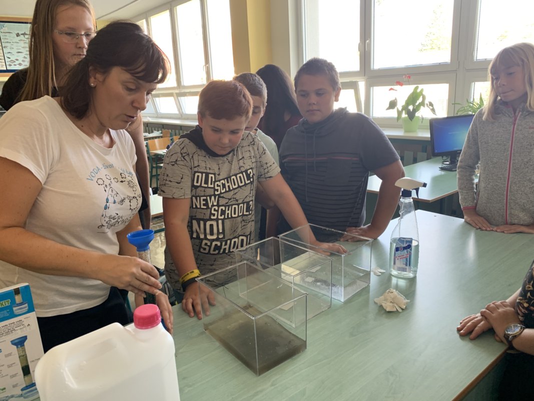 V září se 6.B zúčastnila výukového programu Voda- život v každé kapce. Pod vedením pana učitele Zaorala a paní lektorky z Lísky (více infomací o nevládní neziskové organizaci zabývající se environmentální výchovou, výukou a osvětou zde.)