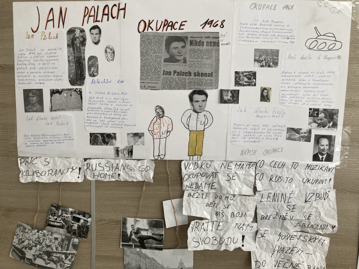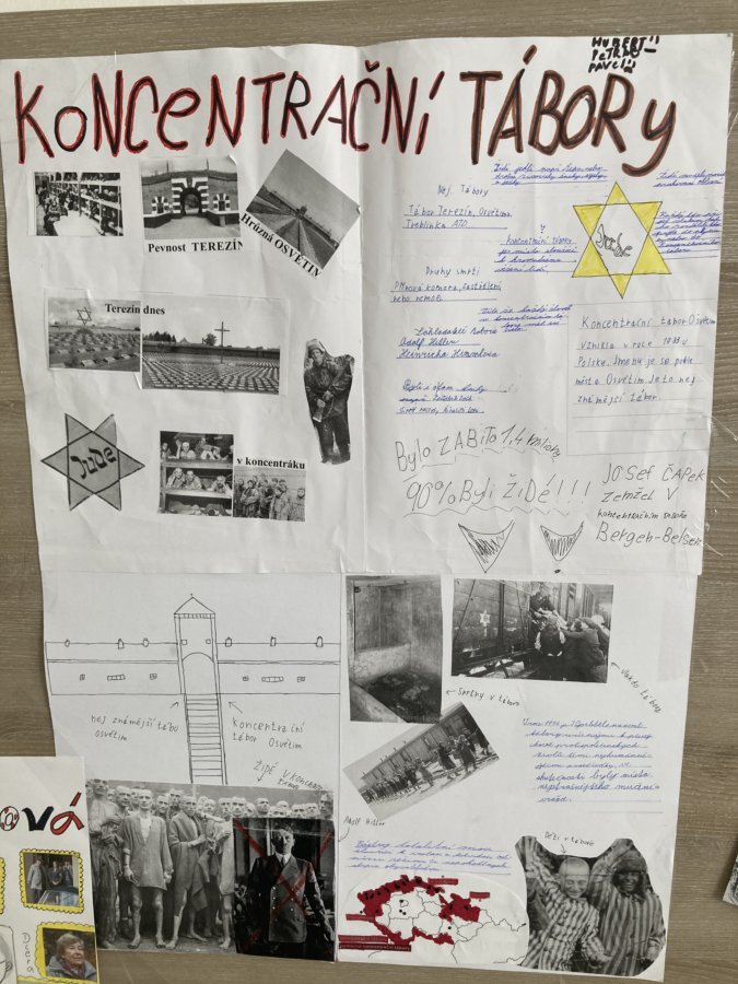Skončilo 1. pololetí a s ním i naše vlativědné učivo o moderních dějinách naší země. Zakončili jsme ho projektem. Ve skupinách jsme si vybrali to, co nás zajímalo – např. Koncentrační tábory, Vypálení Lidic a Ležáků, Partyzánská skupina Olga, Osud Milady Horákové, Pražské jaro 1968 a upálení Jana Palacha... Pak jsme si vyhledali k danému tématu informace, obrázky a zpracovali vše do plakátů. Nejvíc jsme se těšili, ale také obávali prezentace, která se nám nakonec všem povedla. V rámci slohu nás taky bavilo psát dopis významné osobnosti našich dějin. Už jsme prostě páťáci a né hlupáci:)