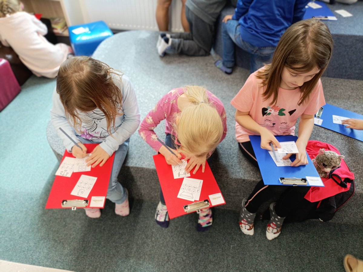V úterý 23. 4. 2024 byli žáci 1. tříd pozváni do knihovny, aby se dověděli, jak to v ní chodí. Paní knihovnice jim ukázaly, jak jsou knihy barevně označené podle žánrů a v které části knihovny se nacházejí. Děti potom splnily několik úkolů, na kterých dokázaly, že již umí téměř vše přečíst - hledaly slova k obrázkům zvířátek, skládaly z písmen jména pohádkových postav, vybíraly písmena k obrázkům různých předmětů a řadily k sobě protiklady.