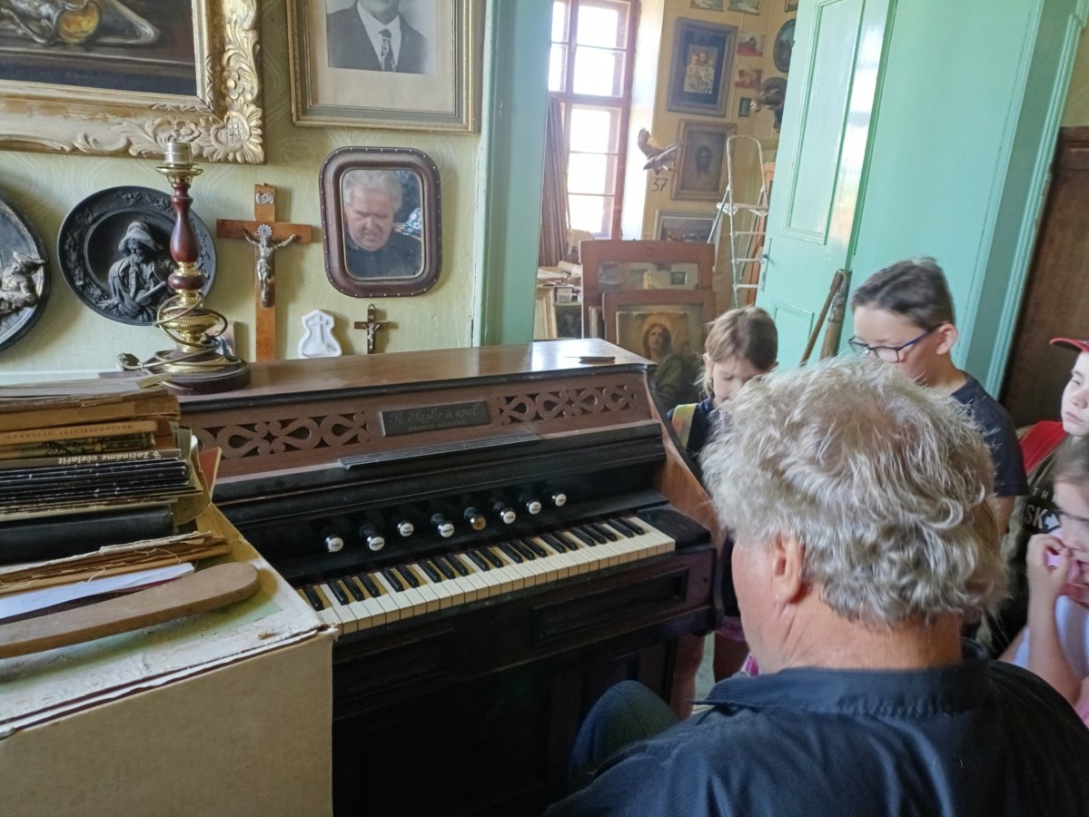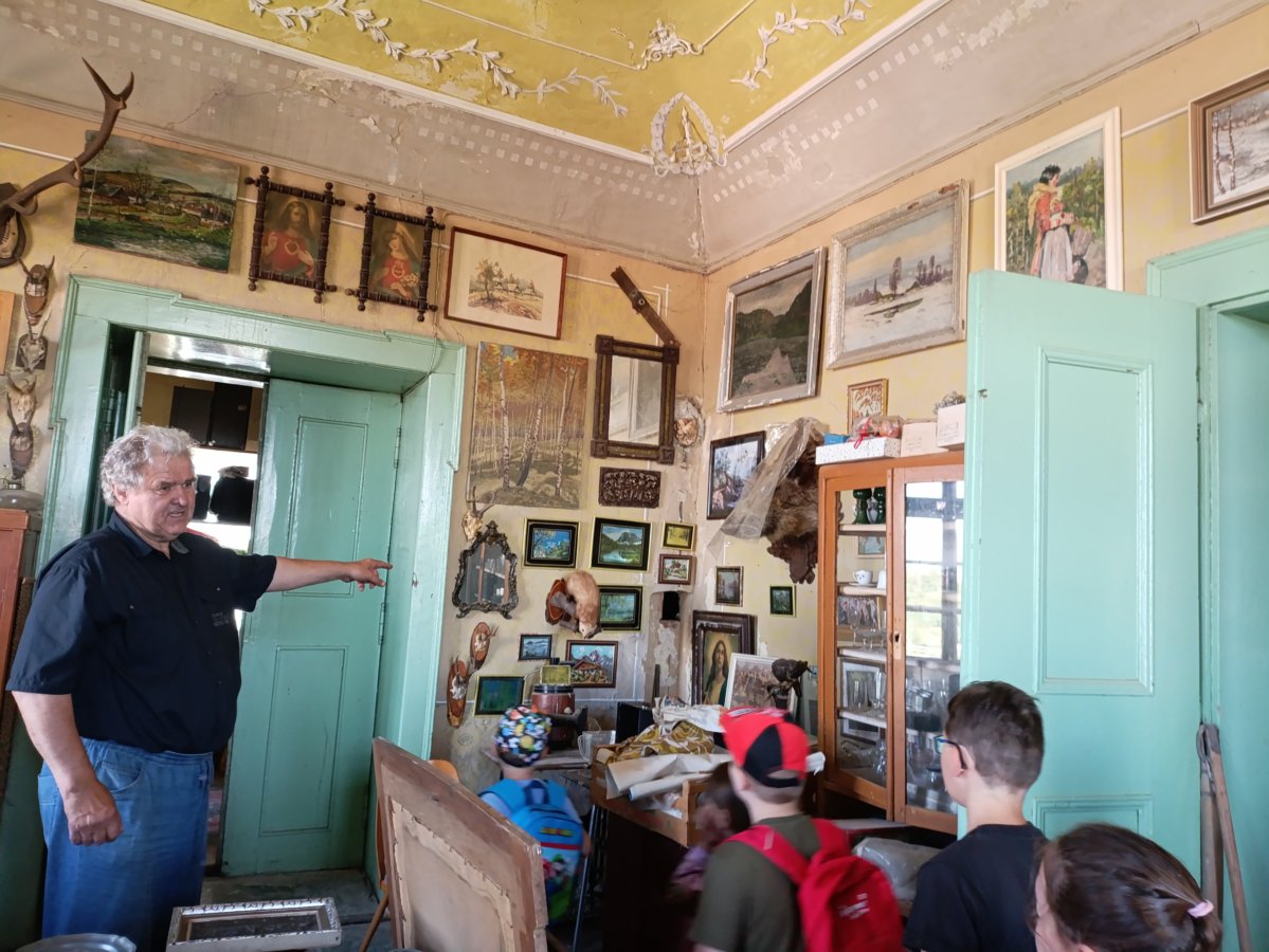 V pondělí 17. 6. 2024 jsme se vydali autobusem na Dřínov. Cílem našeho výletu byl zámek, kterým nás provedl pan majitel Jaroslav Jakub Sviták, což je velký sběratel všeho.