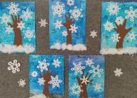 Život ve školních družinách plynul dál s omezením a tak jsme byli ochuzeni o společné soutěže. O to více času jsme věnovali výtvarným a pracovním činnostem a vyzkoušeli jsme si i netradiční výtvarné techniky. Tak vznikly obrázky například z otisku nohy, ruky nebo rozstříhaného brčka. Zajímavá byla i kresba fixy na igelitový sáček a následný otisk na vlhký papír, malování zimy pomocí soli nebo sáčku, zmizíková rezerva a zapouštění barev do klovatiny.