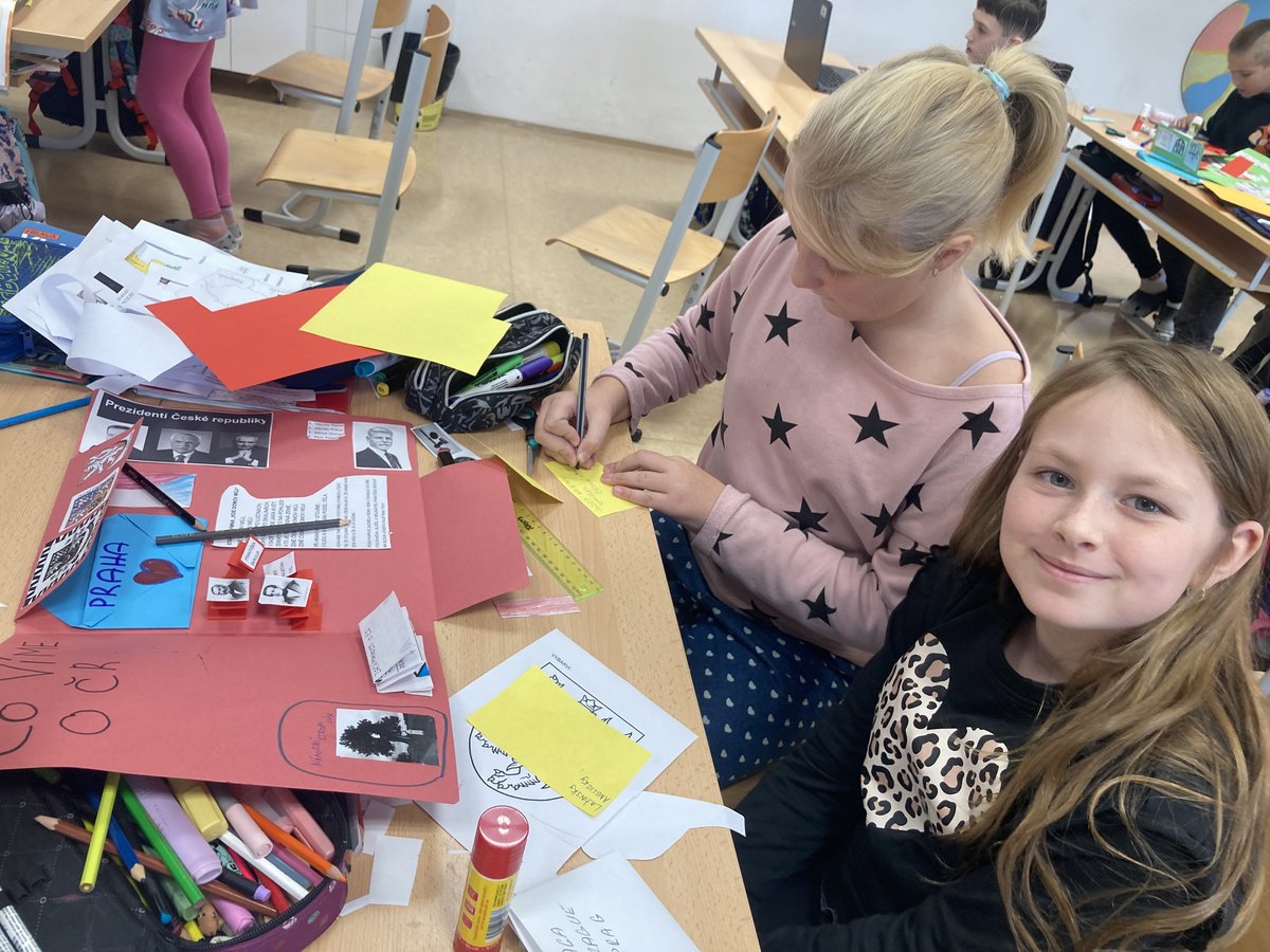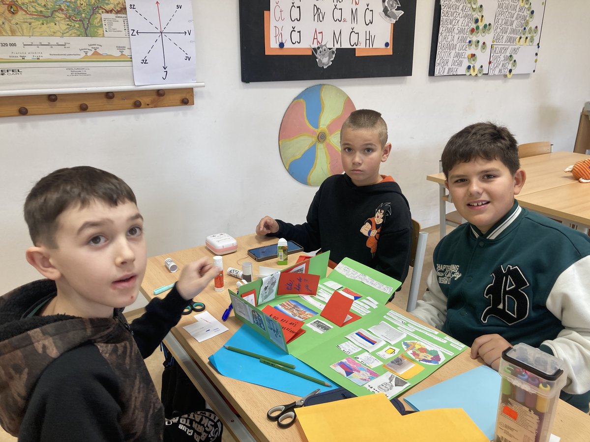 Ve středu 23. 10. na nás - žáky třídy 4.B čekala zajímavá výuka vlastivědy. Tvořili jsme tzv. lapbooky, do kterých jsme při práci ve skupinách zaznamenávali spoustu informací, které jsme se doposud o naší krásné vlasti naučili. Přinesli jsme si z domu nejen spoustu zajímavostí, ale i obrázků, mapek a dokonce Raďa Procházka i malou tiskárnu.