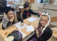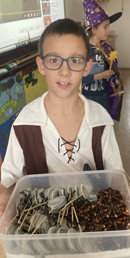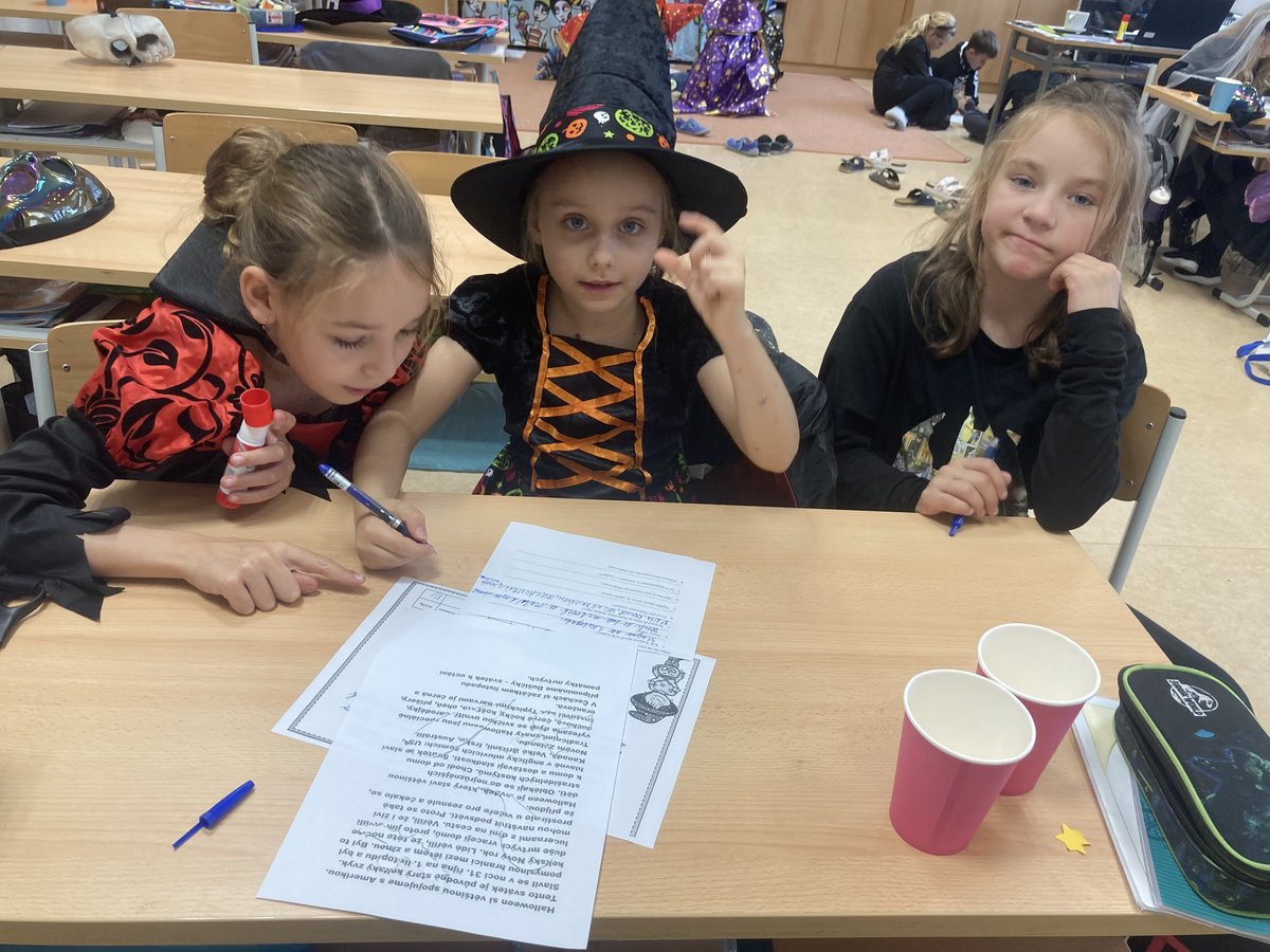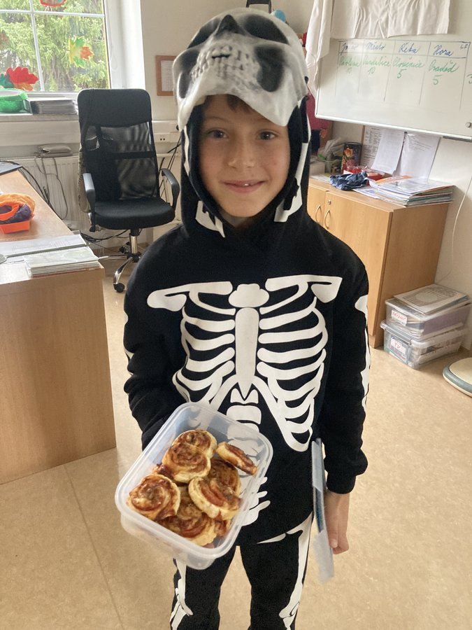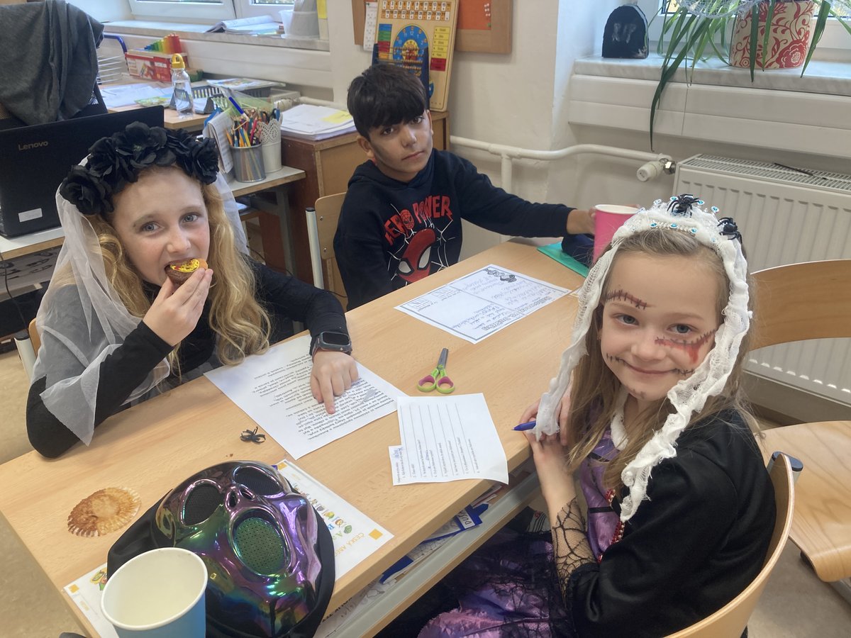 Že škola není jen učení mučení, ale i spousta zábavy a zajímavých zážitků dokazují dny prožité v období HALLOWEENU a DUŠIČEK ve třídě 3.B. Tak jako všechny třídy naší školy jsme si připravili zábavný halloweenský den ve strašidelných maskách, s bohatým občerstvením, se zpěvem, tancem, módní přehlídkou kostýmů, ale i plněním zajímavých úkolů. Za kostýmy a parádní občerstvení moc děkujeme svým rodičům! Nezapomněli jsme také jít společně na hřbitov zapálit svíčky...