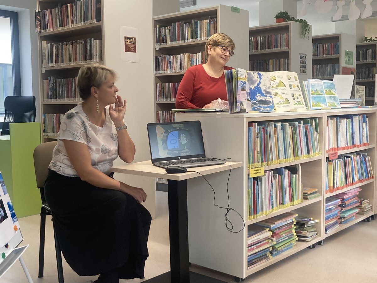 Začátkem listopadu jsme také navštívili Městskou knihovnu v Morkovicích, kde si pro nás paní knihovnice připravily zajímavou besedu s úkoly na téma – Kolik barev má počasí? Bylo to super! A my paním knihovnicím Petře Blešové a Janě Navrátilové děkujeme.