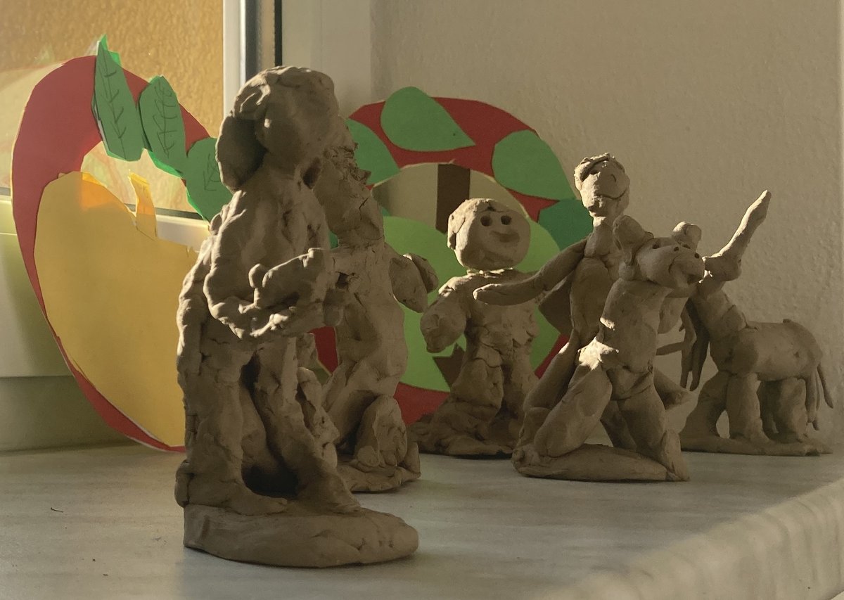 Po besedě jsme si ještě prohlédli sochy na Náměstí, a pak si zahráli sami na sochaře, což nás fakt bavilo.