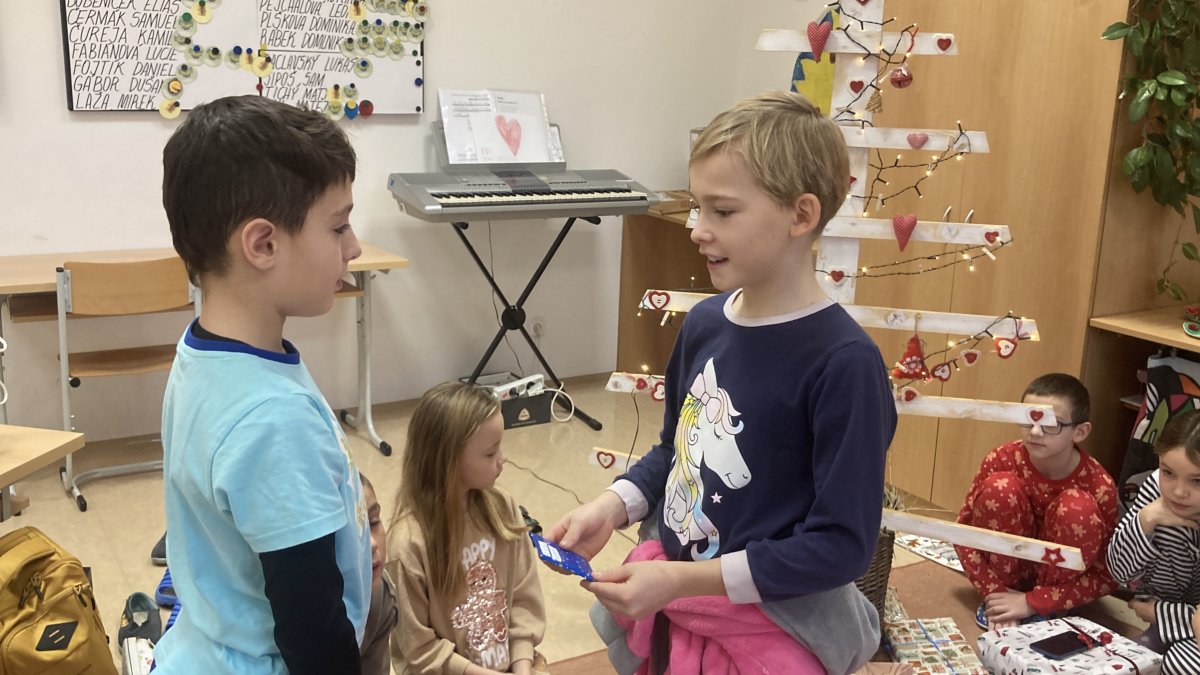 Co to je? Nejsou to hmotné dárky, ale dárky v podobě ukázky toho, kdo a jaký jsem. Žáci si vylosovali na každý den v adventním kalendáři jedno nebo dvě jména spolužáků, kteří na druhý den ve třídě předvedli, co umí, co je baví, s čím si rádi hrají… Cílem bylo dozvědět se o svých spolužácích něco nového, co jsme o nich třeba ještě nevěděli, ale také zvyšovat sebedůvěru a zdravé sebevědomí jednotlivých žáků. Posilovali jsme tím a zlepšovali vztahy ve třídě, protože jsme si za ukázky tleskali a děkovali. Všichni byli moc šikovní a dočkali jsme se nejednoho překvapení. Máme mezi sebou například muzikanty - dva houslisty, bubeníka, klarinetistu, ale i chovatele morčátek, fotbalistu, skokana přes švihadlo, hasiče, programátora, cvičitelku hobby horsingu, malíře a sochaře, děti milující své hračky, stavebnice, knihy…