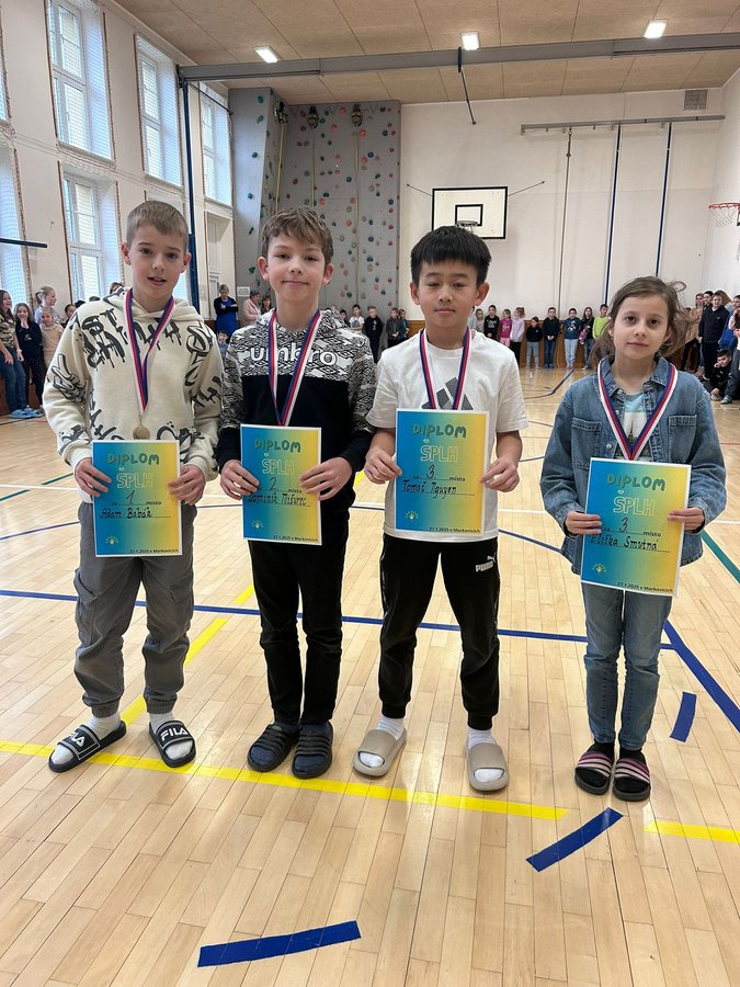 4. ročník - 1. místo – A. Babák, 2. - D. Mišurec, 3. - E. Smutná, T. Nguyen