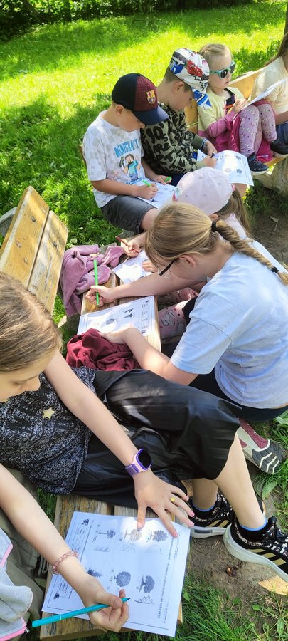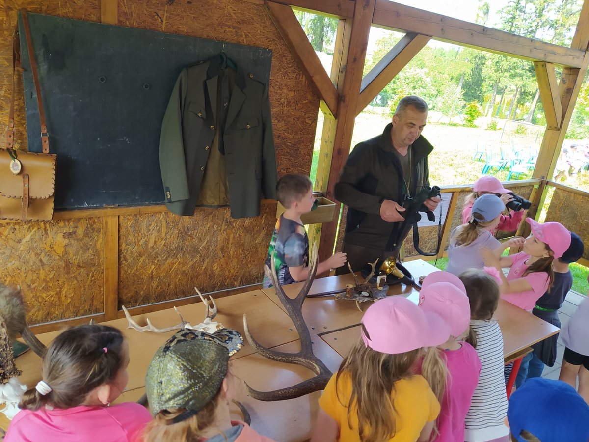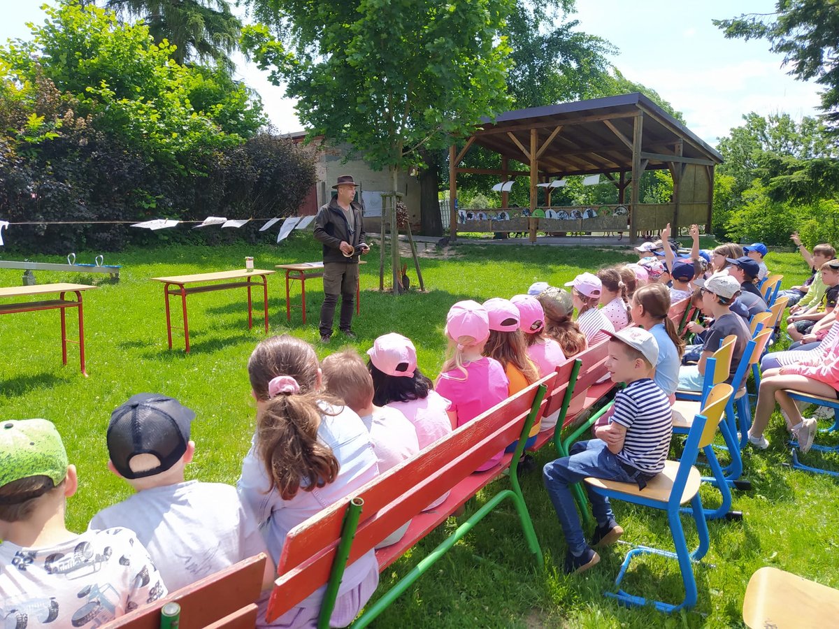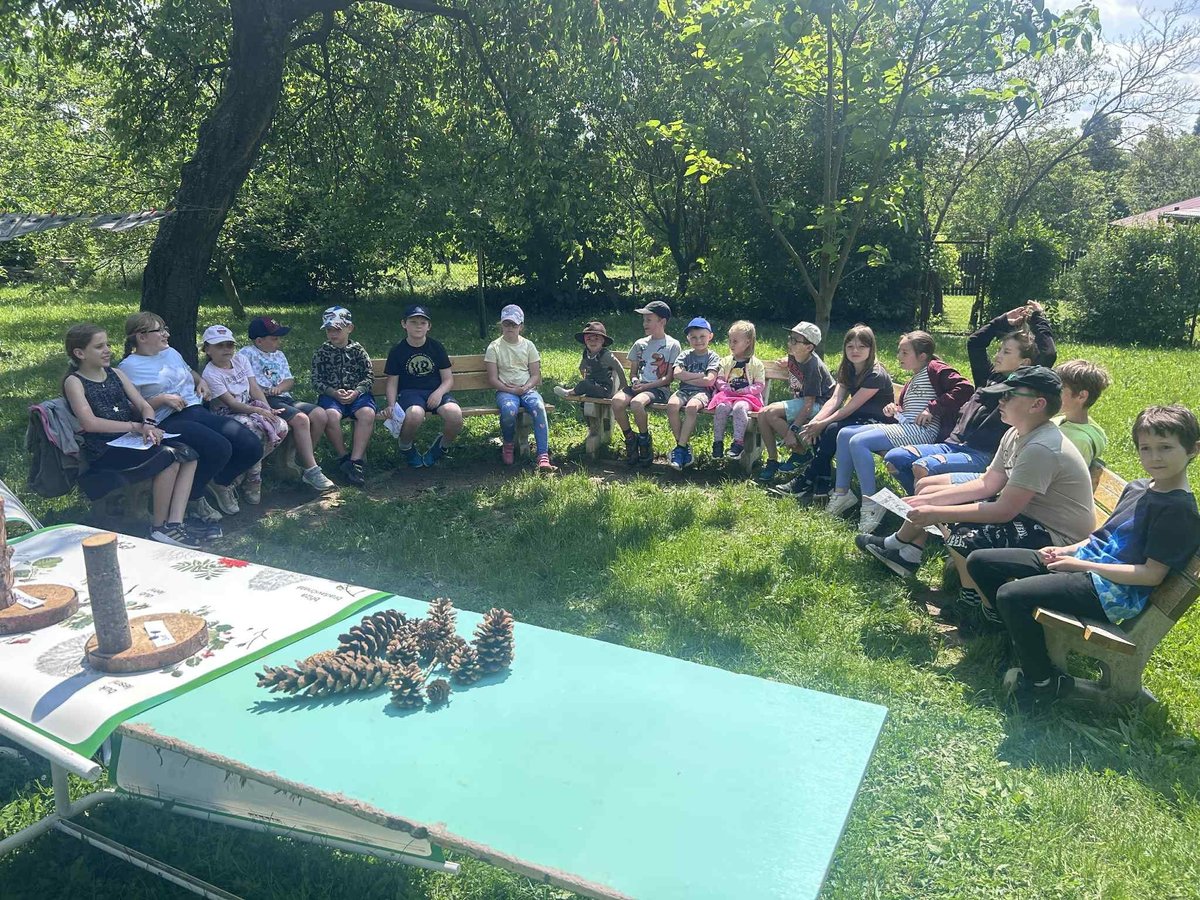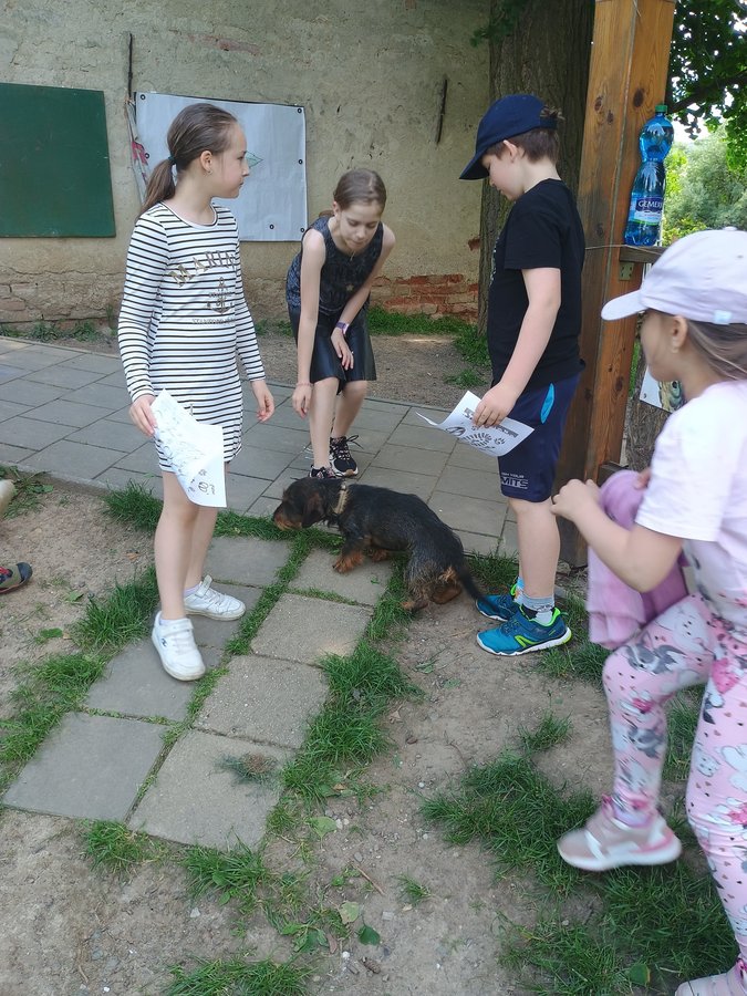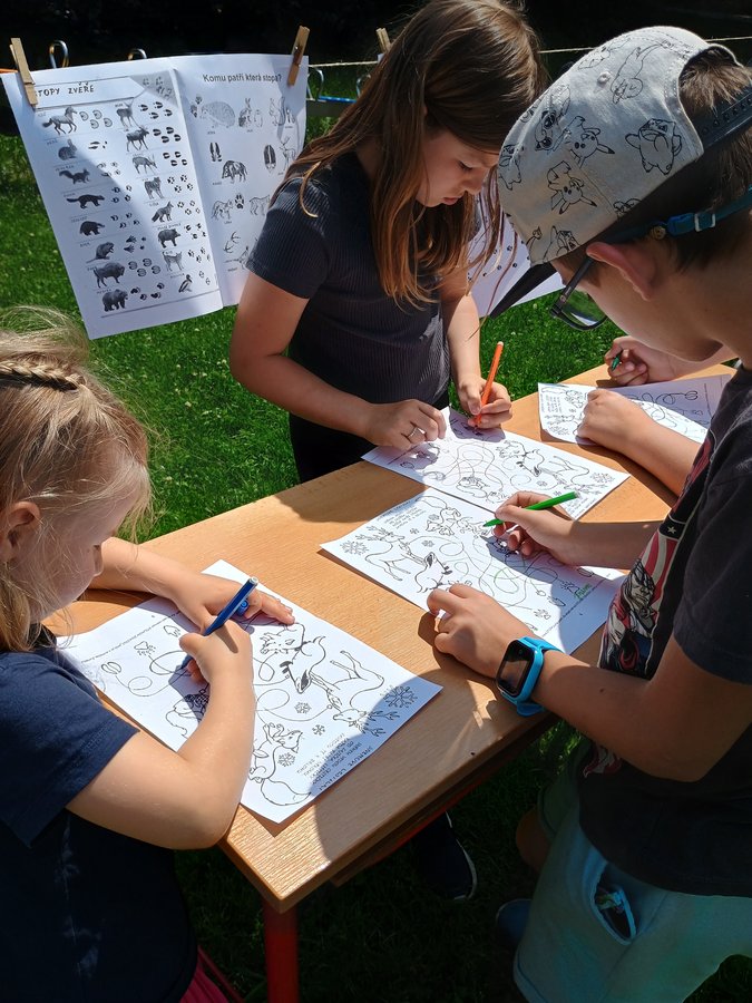 Červen - měsíc myslivosti - si děti ze školní družiny přiblížily v besedě s myslivci. Zaujalo je povídání o myslivosti, myslivcích, lesní zvěři, ale i povídání o samotném lese. Plnily úkoly na připravených stanovištích, kde přiřazovaly stopy zvěře a určovaly druhy stromů. Největší zájem u nich vyvolala ukázka trofejí, shozů jelení a srnčí zvěře, vábniček na zvěř a nebo lovecký pes Ory. Ten doprovázel svého páníčka, pozvaného myslivce Františka Holáska, kterému děkujeme za poutavé vyprávění.
