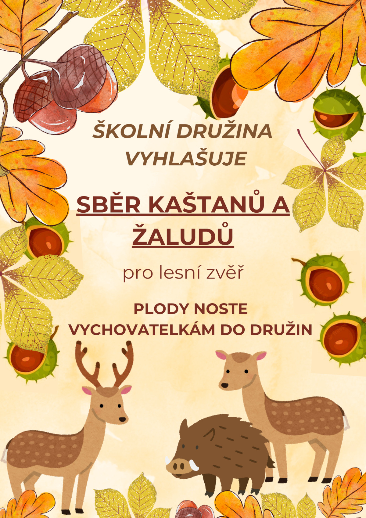Sběr kaštanů a žaludů pro lesní zvěř