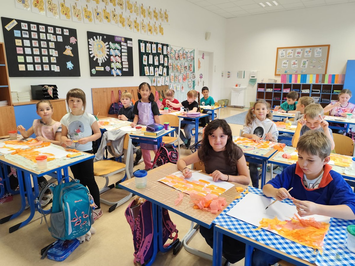 Ve třídě jsme si společně vytvořili podzimní výzdobu, aby se nám v ní líbilo a dobře učilo.