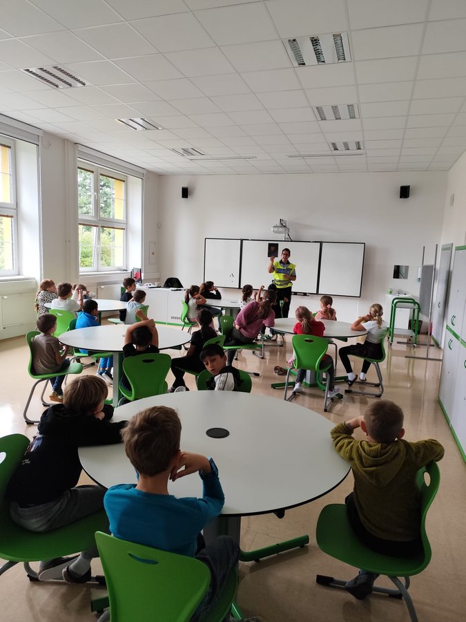 Během měsíce září jsme zažili spoustu zajímavých aktivit. Vypravili jsme se na zahrádkářskou výstavu, kterou pro nás přichystali místí zahrádkáři. Na výstavě jsme viděli obrovskou dýni, spoustu ovoce a zeleniny. Do školy za námi přišla také paní policistka s programem Policista je náš kamarád, při kterém jsme se dozvěděli, jak se chovat bezpečně doma i venku a udělali jsme si otisky našich dlaní. Nezapomněli jsme ani na sport a zúčastnili se Běhu Evy Hladné na podporu onkologicky nemocných dětí.