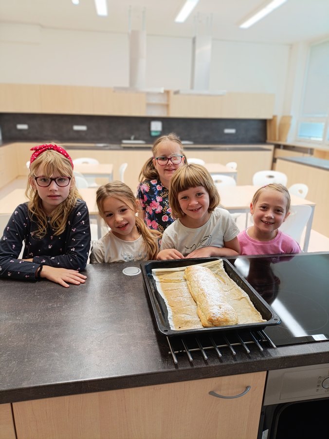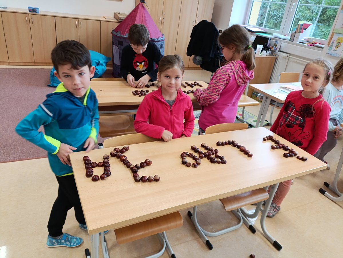 Ačkoliv se to nezdá, tak za první 3 měsíce jsme toho stihli v 1. B opravdu hodně. Ve školní kuchyňce jsme si upekli voňavý štrůdl, navštívili knihovnu i výstavu ovoce a zeleniny. Naši patroni deváťáci si společně s námi zaběhli charitativní běh Evy Hladné a připravili si pro nás zábavný program na Halloween. Přímo do naší třídy se přišli podívat předškoláci z MŠ Morkovic i Pornic. Do Kroměříže jsme si zajeli na divadelní představení Kvak a Žbluňk a na návštěvu Muzea s programem Modrotisková pohádka.