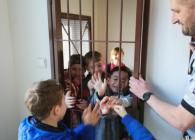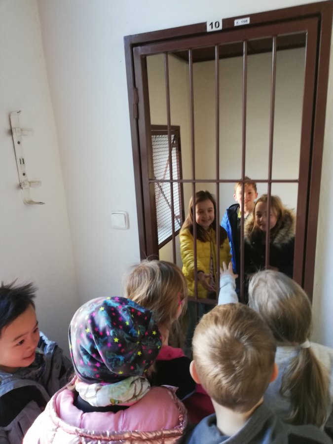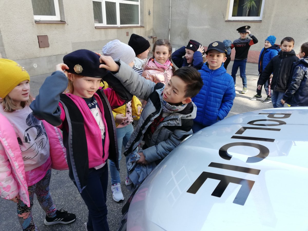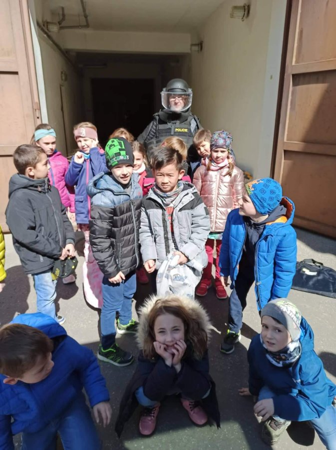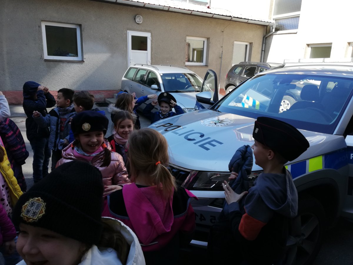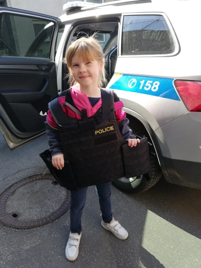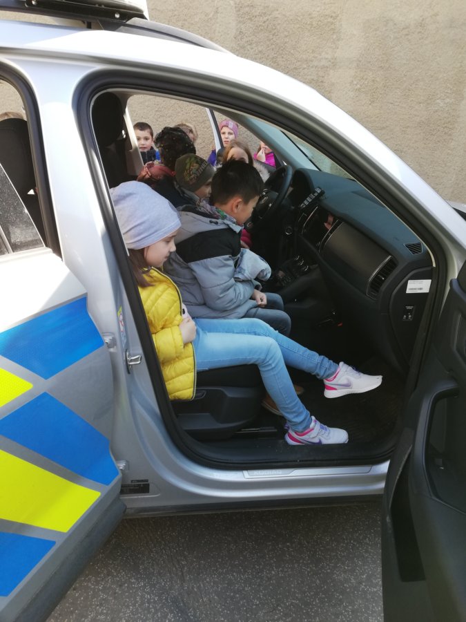 V úterý 12. dubna 2022 jsme se vydali za tatínkem naší spolužačky Terezky, který pracuje u Policie v Morkovicích. Provedl nás po budově místní stanice, ukázal její vybavení – počítače, kamery…, nakoukli jsme do cely pro nezbedné spoluobčany, prozkoumali policejní auto a spustili i majáky s houkačkou. Nakonec jsme si vyzkoušeli policejní čepice a neprůstřelné bezpečnostní vesty, které jsou pořádně těžké.