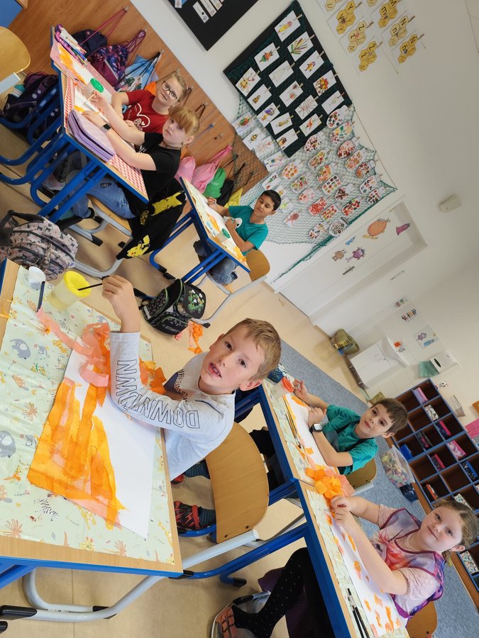 Ve třídě jsme si společně vytvořili podzimní výzdobu, aby se nám v ní líbilo a dobře učilo.