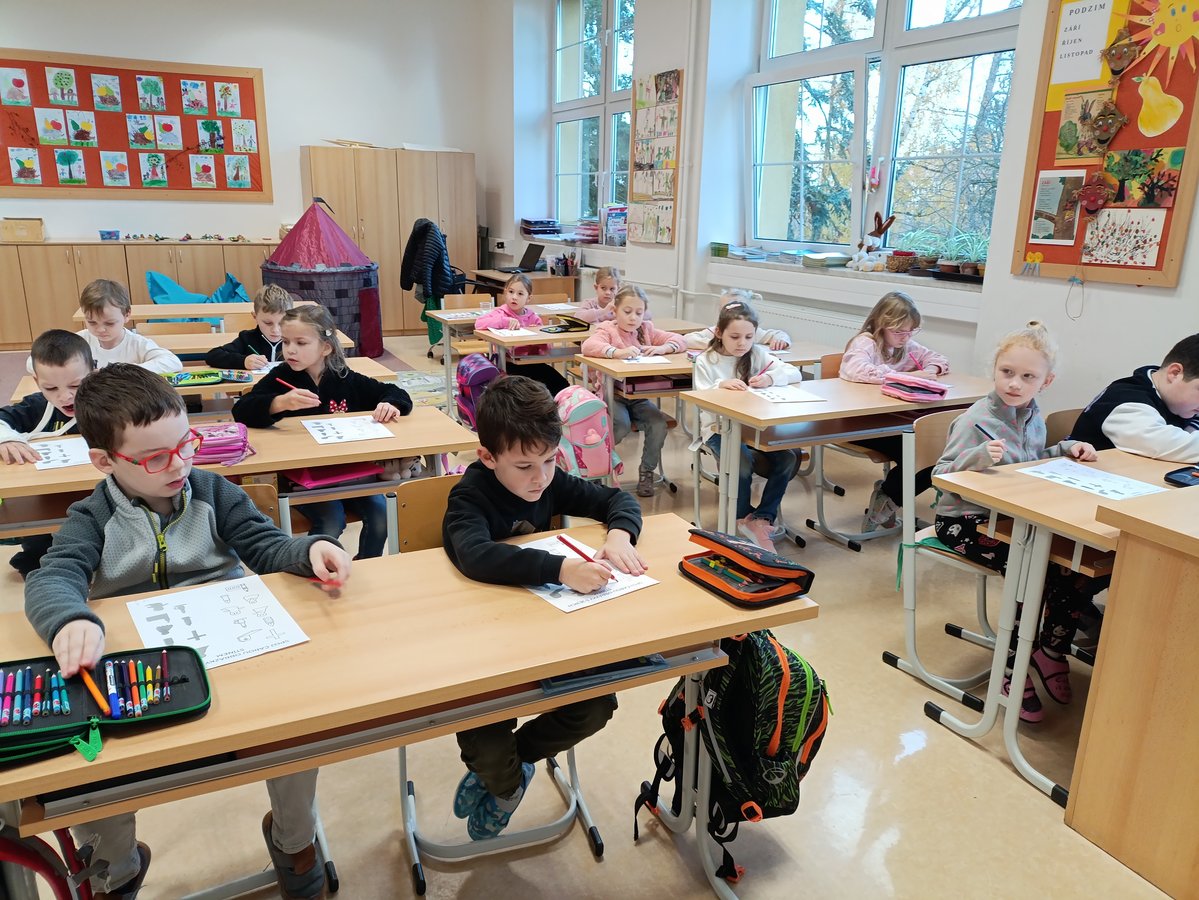 Ačkoliv se to nezdá, tak za první 3 měsíce jsme toho stihli v 1. B opravdu hodně. Ve školní kuchyňce jsme si upekli voňavý štrůdl, navštívili knihovnu i výstavu ovoce a zeleniny. Naši patroni deváťáci si společně s námi zaběhli charitativní běh Evy Hladné a připravili si pro nás zábavný program na Halloween. Přímo do naší třídy se přišli podívat předškoláci z MŠ Morkovic i Pornic. Do Kroměříže jsme si zajeli na divadelní představení Kvak a Žbluňk a na návštěvu Muzea s programem Modrotisková pohádka.