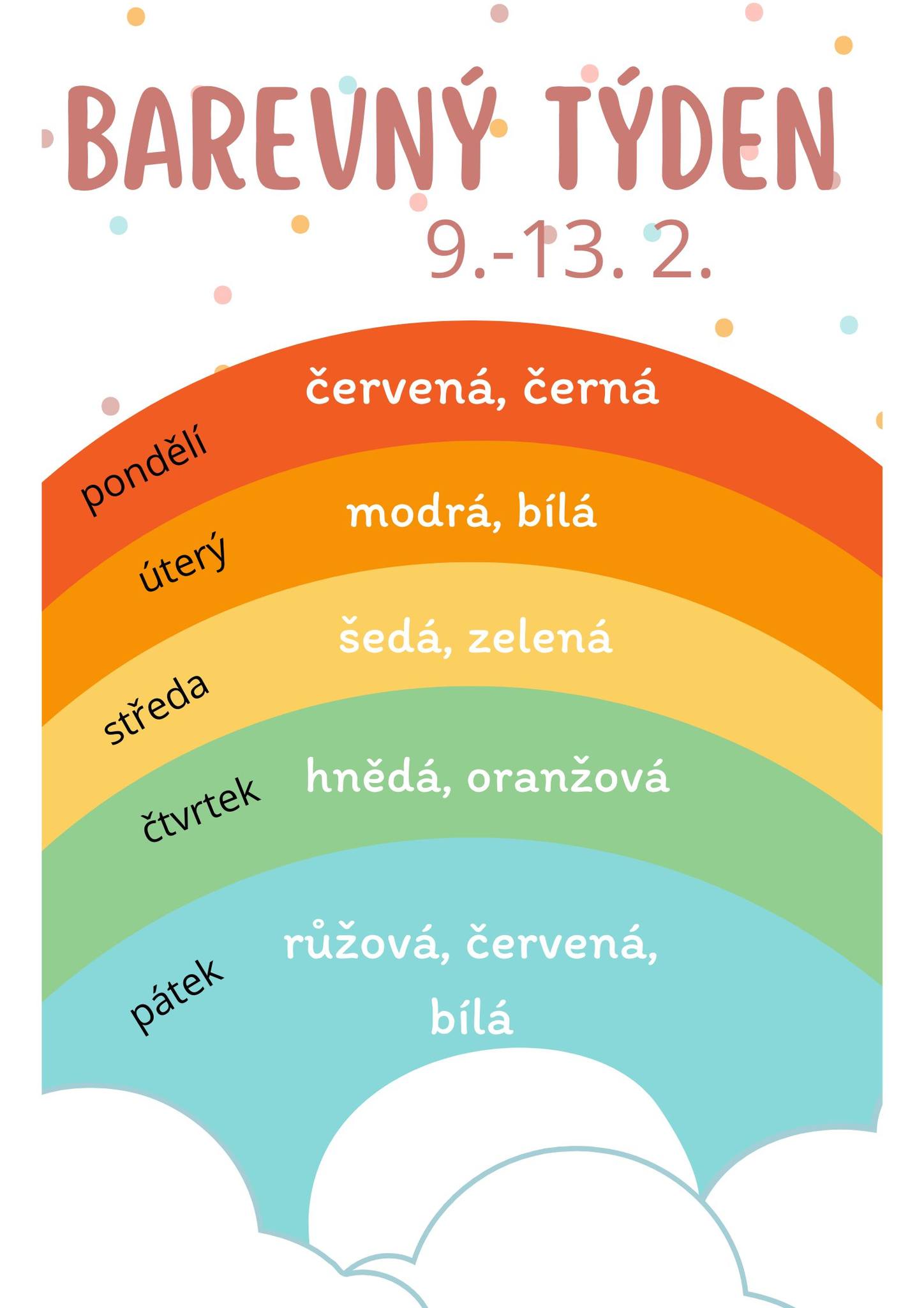 Nezapomeňte přijít oblečeni v barvách jednotlivých dnů – a užít si malé zpestření školních dní.